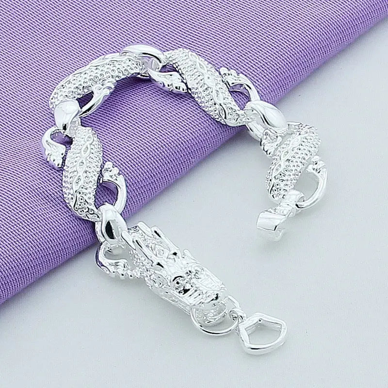 Add a touch of sophistication with this sterling silver Chinese dragon chain bracelet. Perfect for men who enjoy unique and quality accessories.