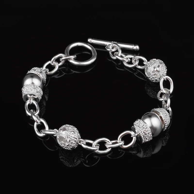 Elegantly crafted 925 silver circle chain bracelet that is perfect for party wear. Make a statement with this stylish accessory.