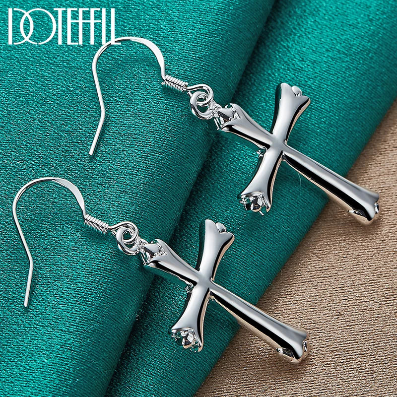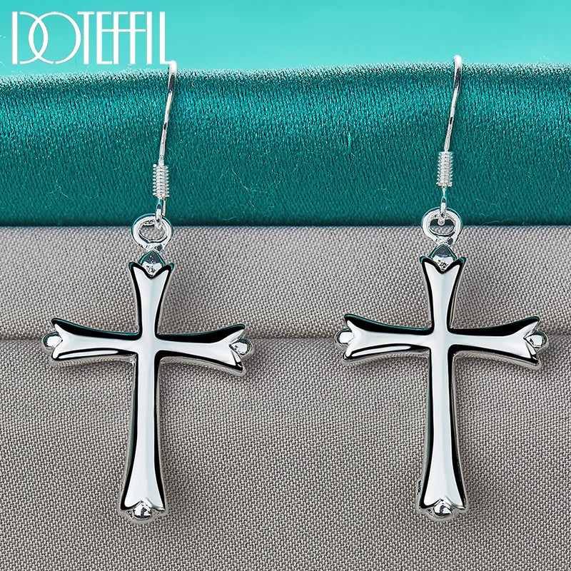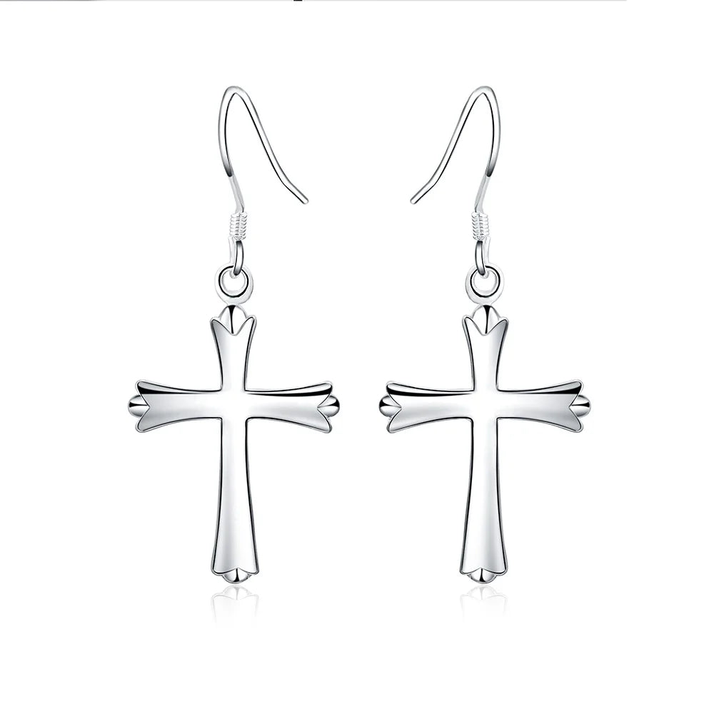 These elegant 925 sterling silver cross drop earrings are perfect for both men and women. Ideal for weddings, engagements, parties, and everyday wear.