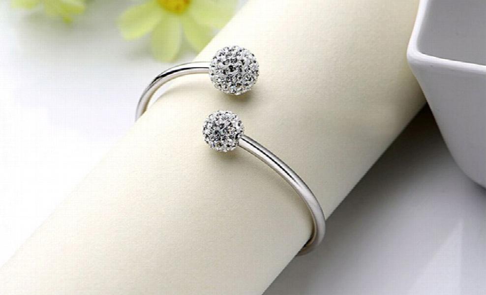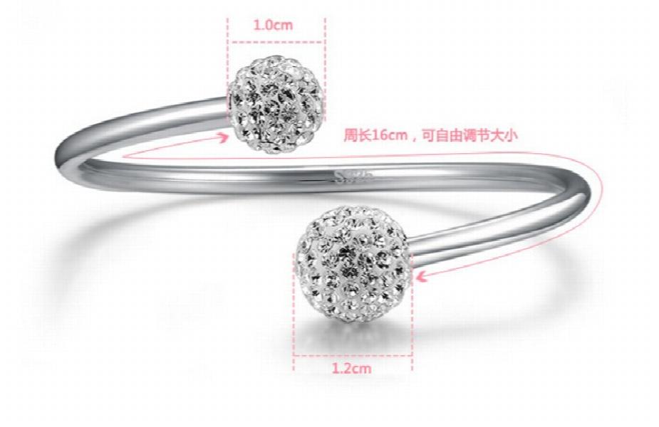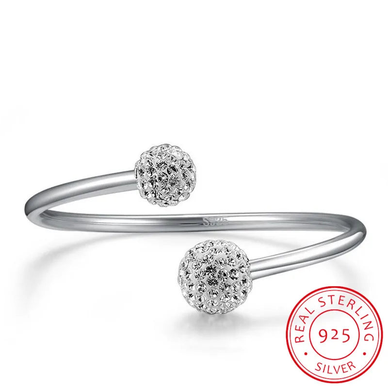 925 Silver Crystal Ball Bangles Cuff Bracelets for Women