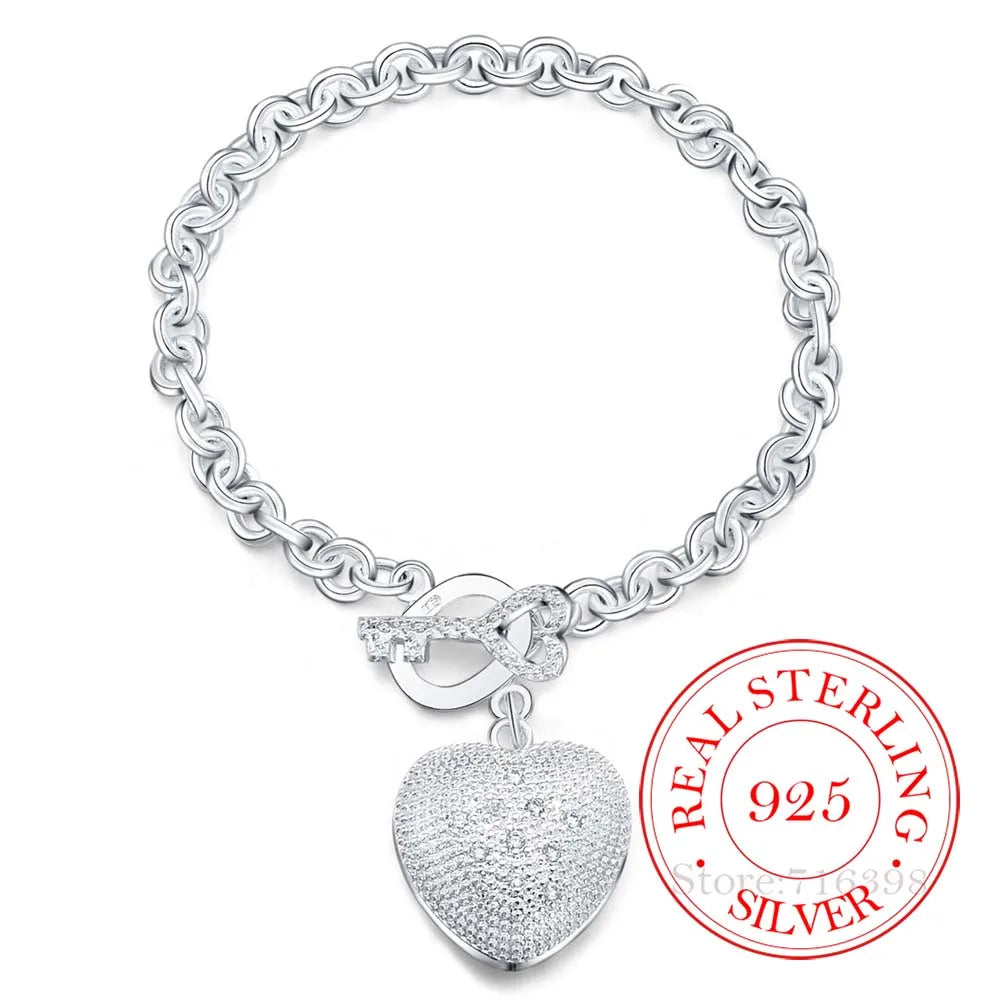This 925 sterling silver bracelet features a crystal heart charm, perfect for adding a touch of elegance to any outfit. Suitable for men and women, it's an ideal accessory for parties and makes a great gift.