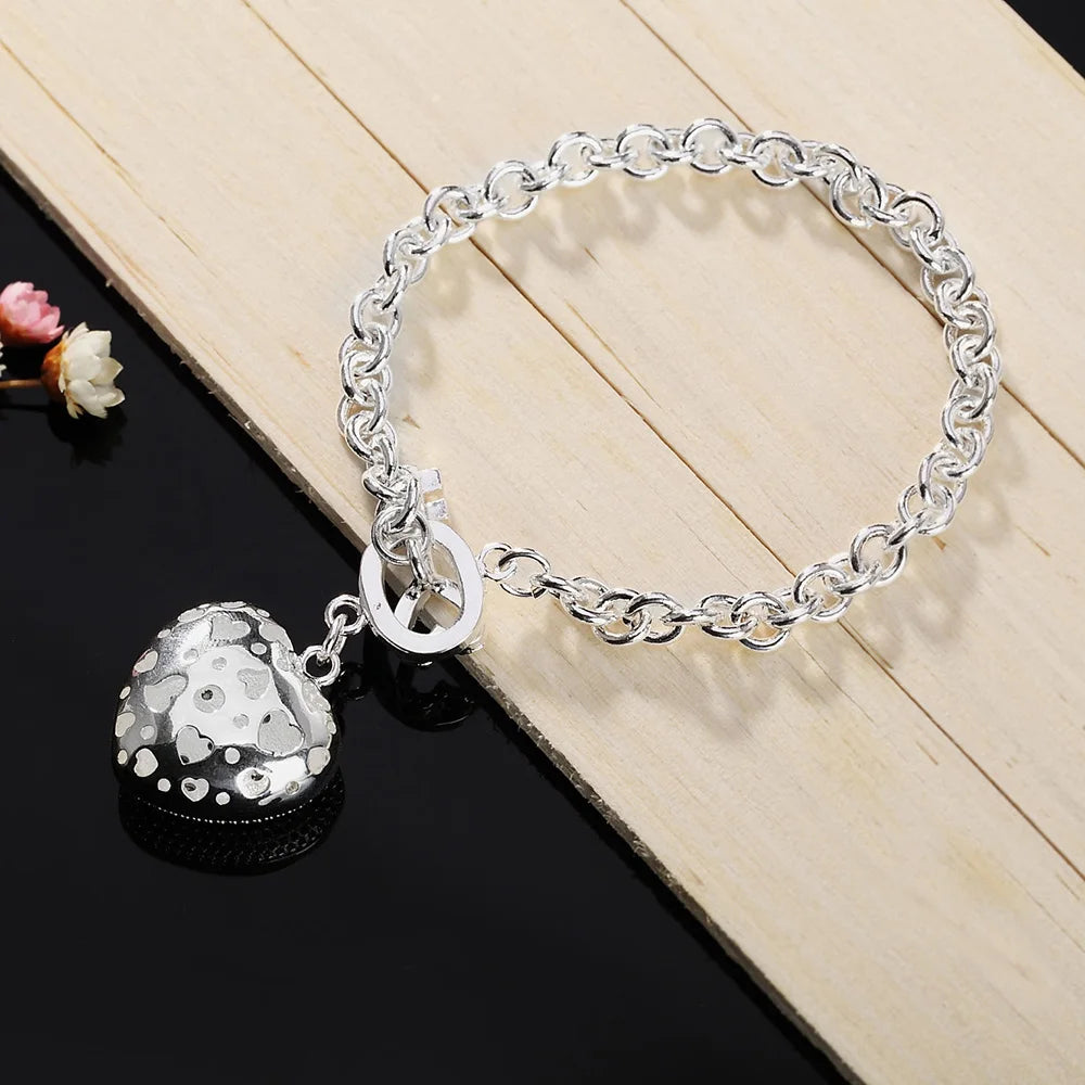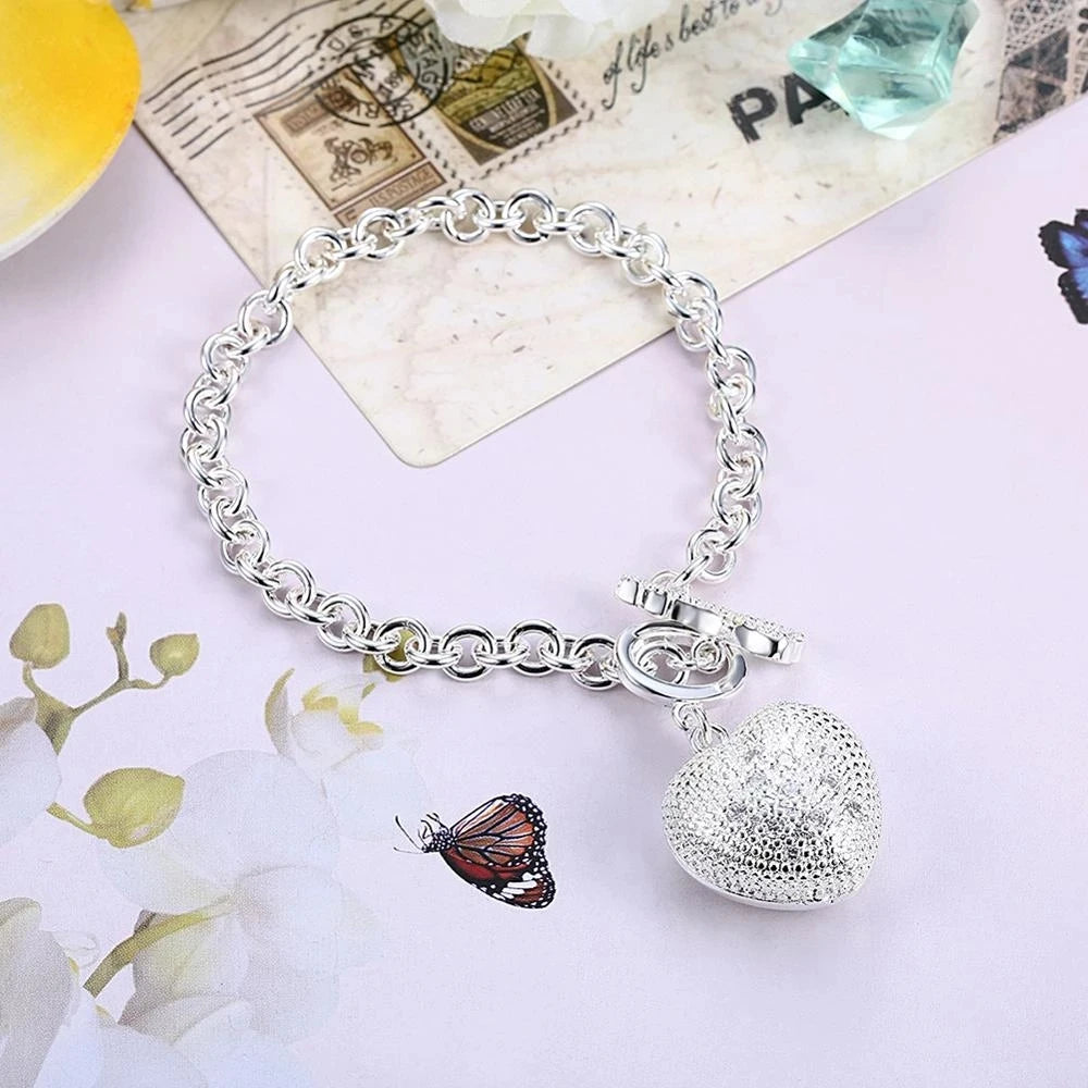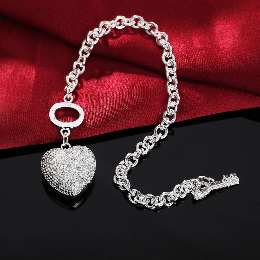 925 Silver Crystal Heart Key Bracelet for Women Wedding Couple Jewelry