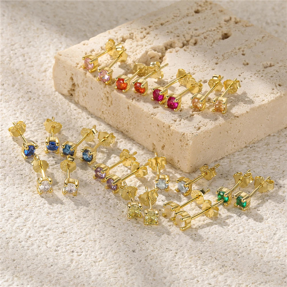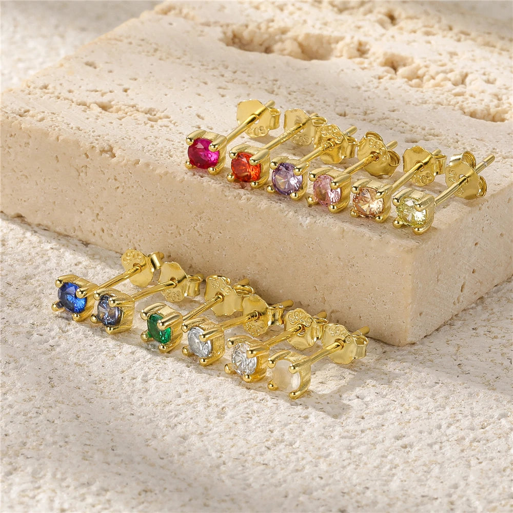 These stunning stud earrings are made of 925 sterling silver and feature tiny clear crystals in 12 different colors. They make a perfect birthday gift for women who love elegant jewelry.