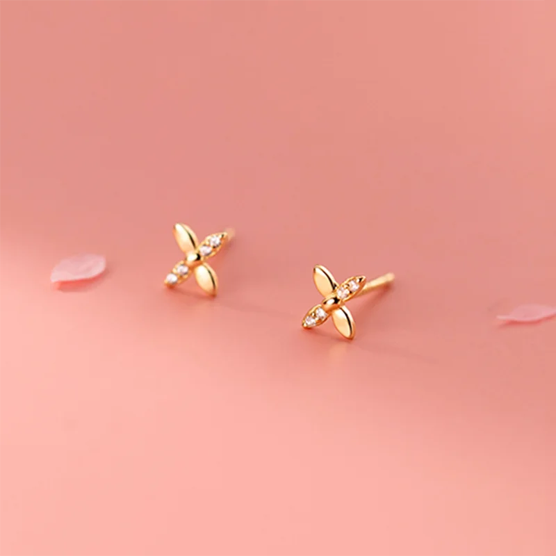 Dazzle in these classic cross and petal flower earrings with CZ zircon stones. Perfect for birthdays and special occasions.