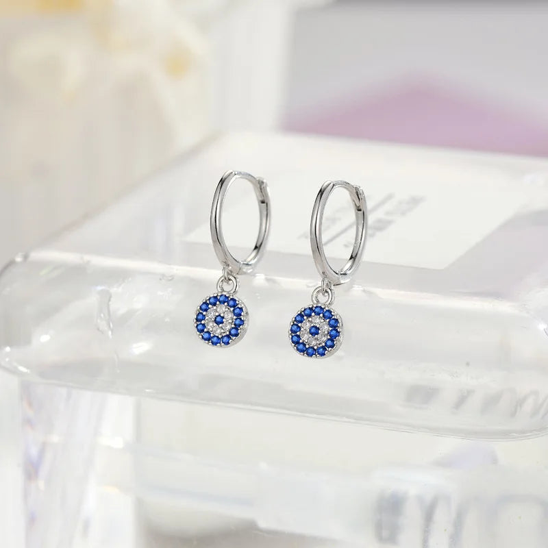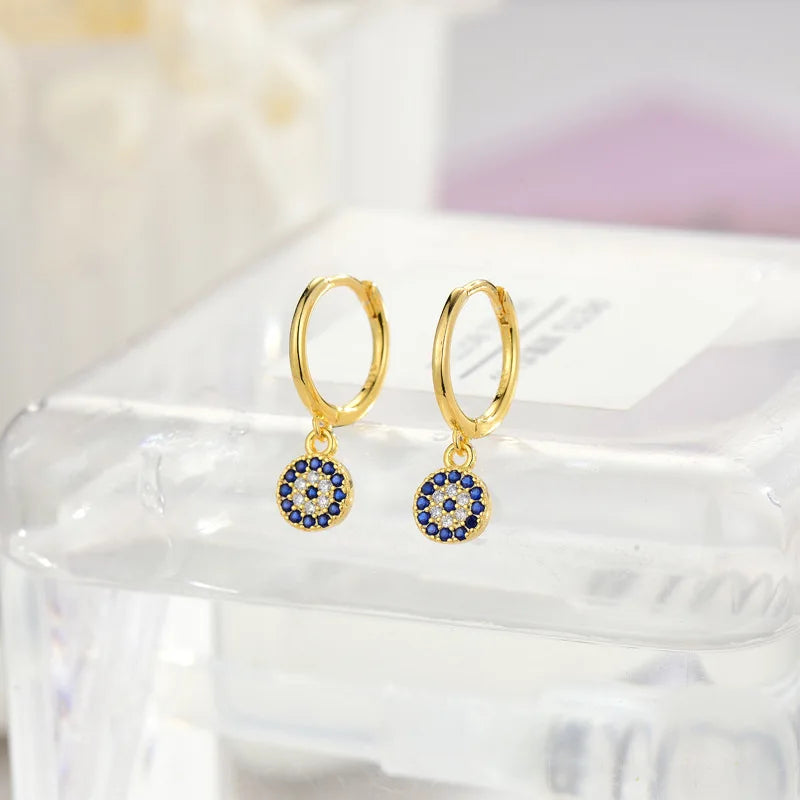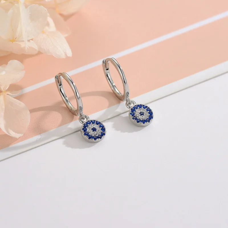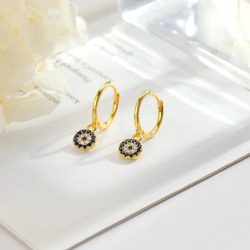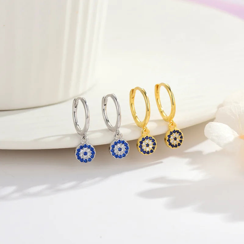 Enhance your style with these eye-catching hoop earrings featuring cubic zirconia eyes. Perfect for parties and special occasions.
