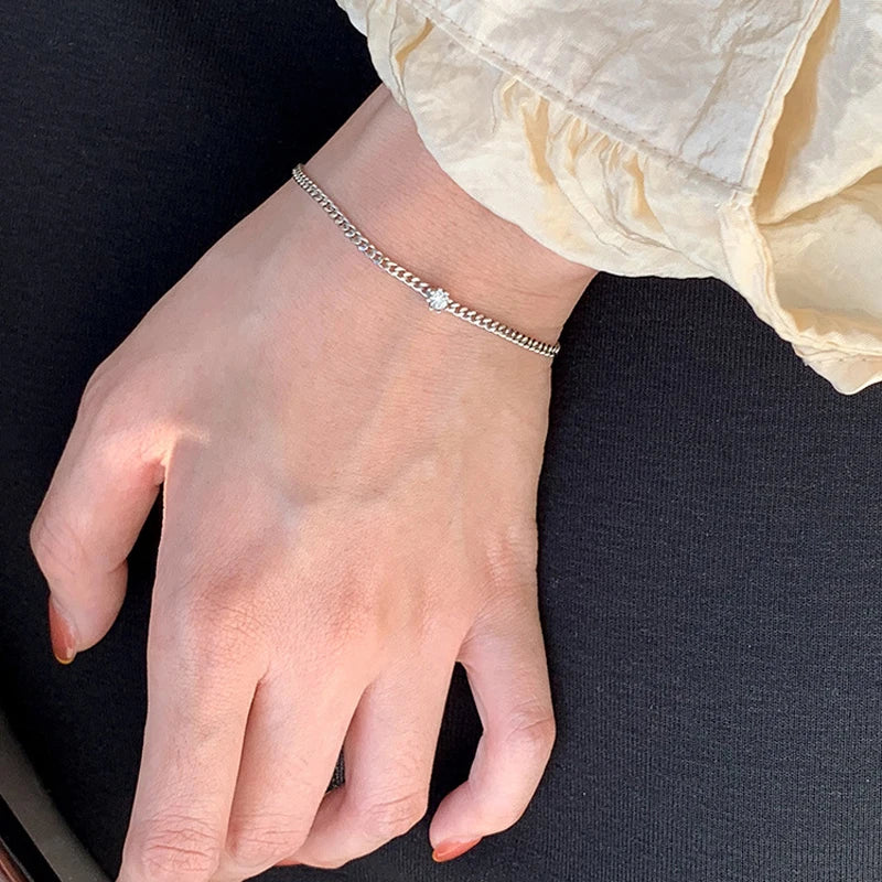 Elegant and stylish 925 sterling silver bracelet with a single diamond accent. Perfect for adding a touch of sophistication to any outfit. Ideal for gifting to your girlfriend or loved one.