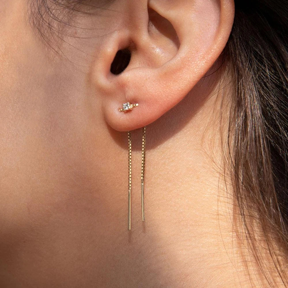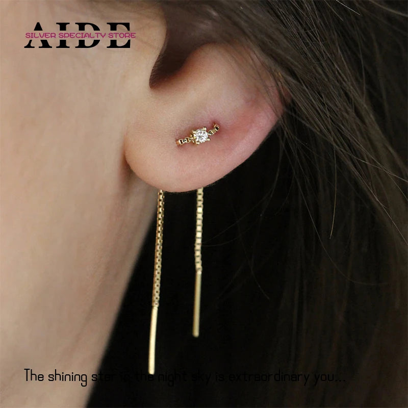 Add a touch of elegance to your look with these stunning 925 sterling silver diamond chain tassel earrings. Perfect for weddings and special occasions.