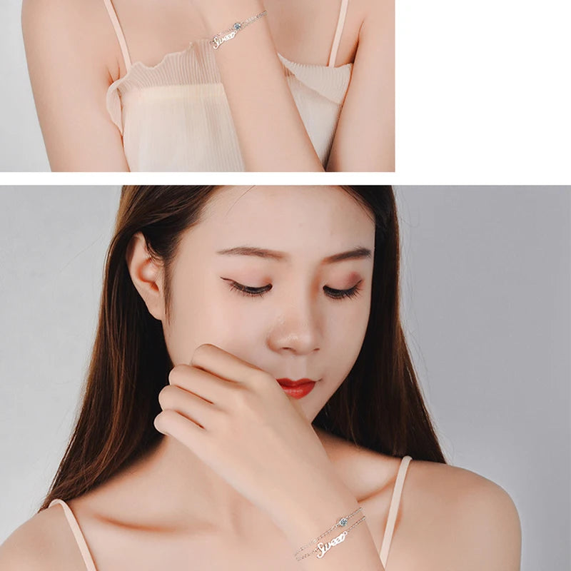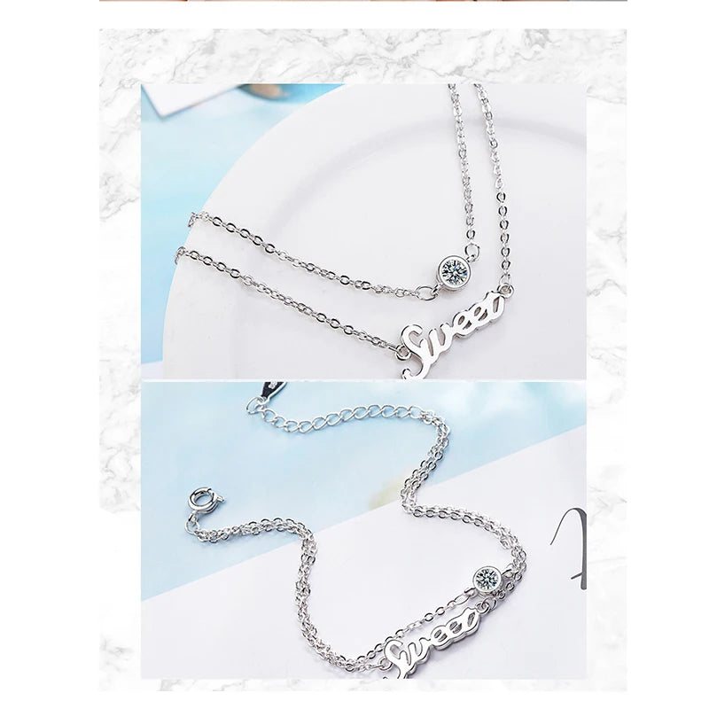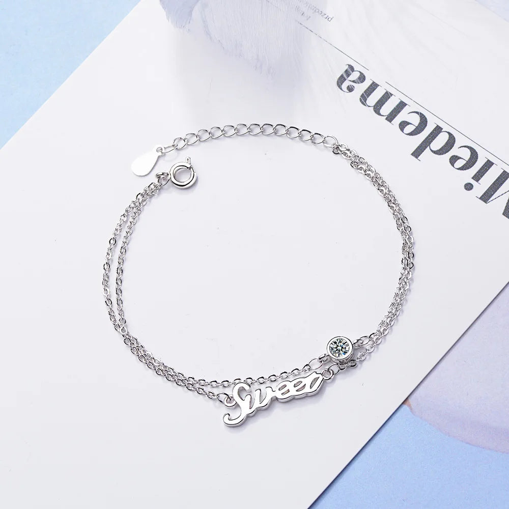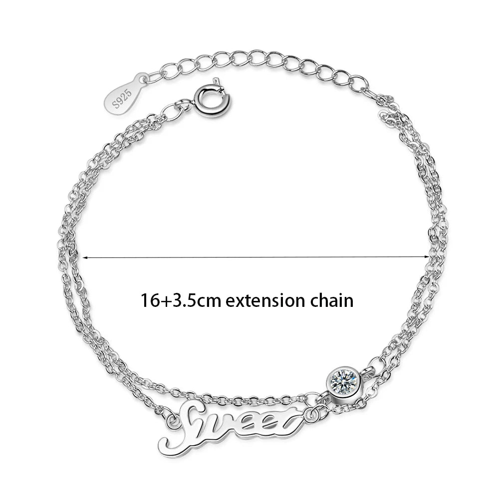 Adorn your wrist with this charming double layer bracelet featuring the word 'SWEET' and sparkling zircon stones. Made of 925 sterling silver, this lovely piece is perfect for everyday wear.