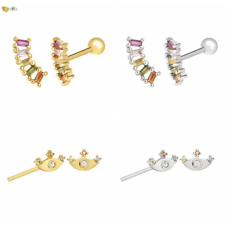 925 Silver Ear Studs Colorful Earrings Geometric Jewelry