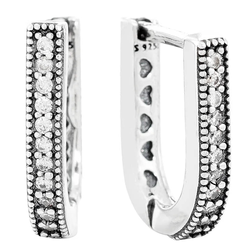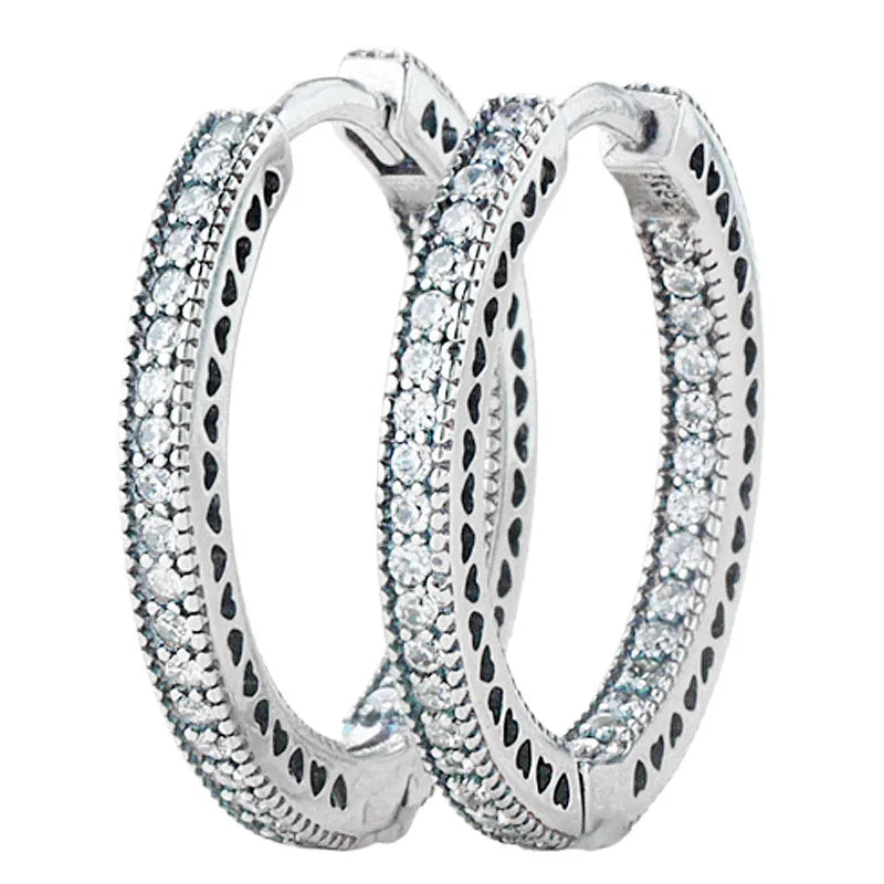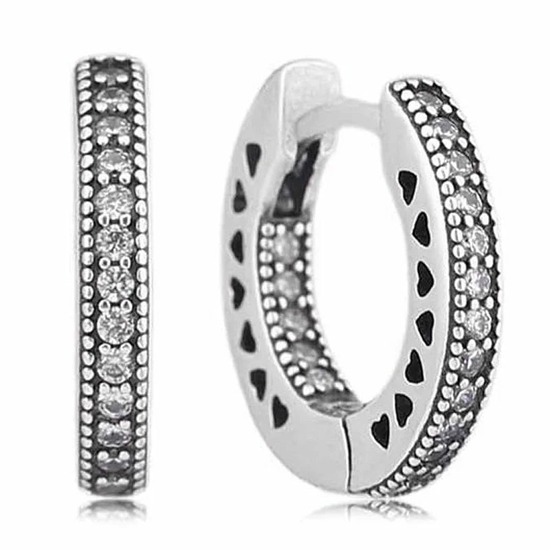 Stylish 925 sterling silver hoop earrings featuring heart and circle motifs. Perfect gift for women.