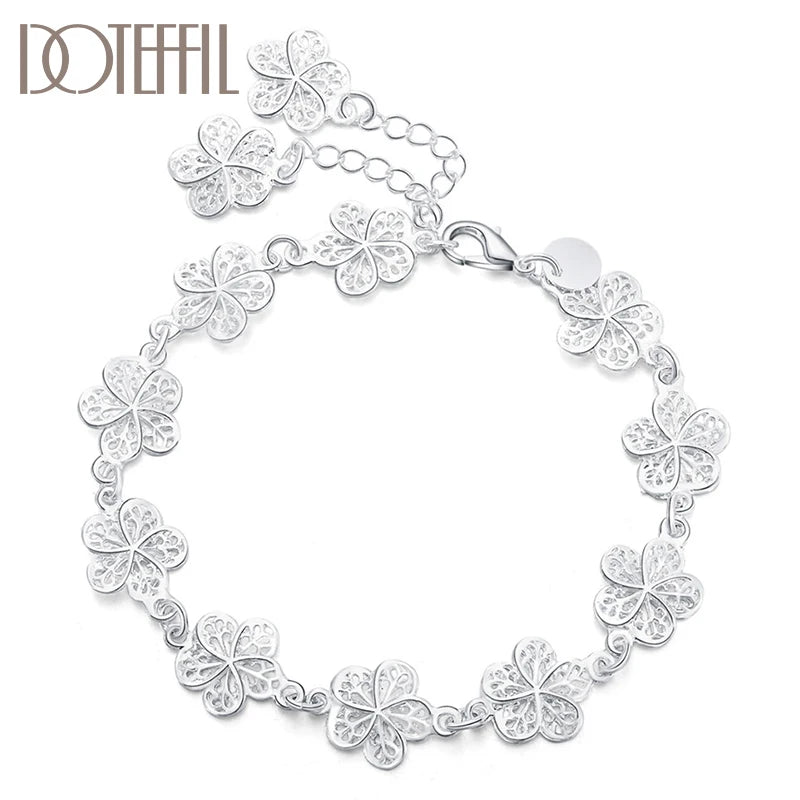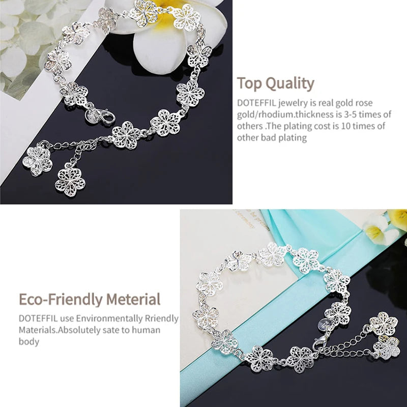 Adorn your wrist with this elegant 925 silver bracelet featuring intricate flower design. Perfect for weddings and special occasions.