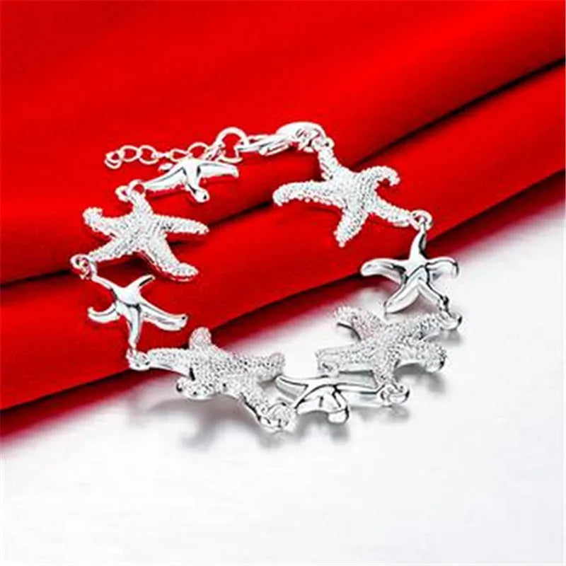 Add a touch of elegance to your wedding or party outfit with this 925 sterling silver bracelet featuring frosted starfish charms. Perfect for holiday wear.