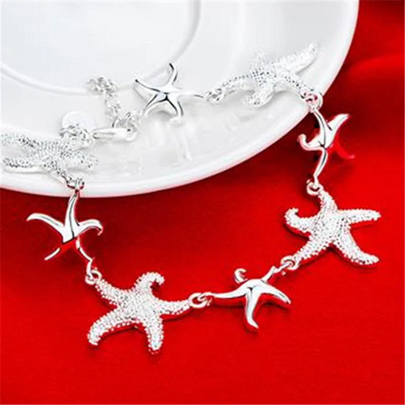 925 Silver Frosted Starfish Charm Bracelet for Women