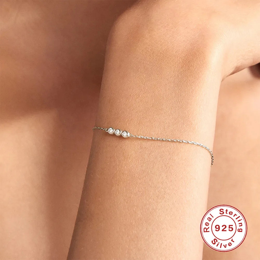 Elegant and adjustable hand chain featuring three crystals. Made of 925 sterling silver, perfect for women and teens.