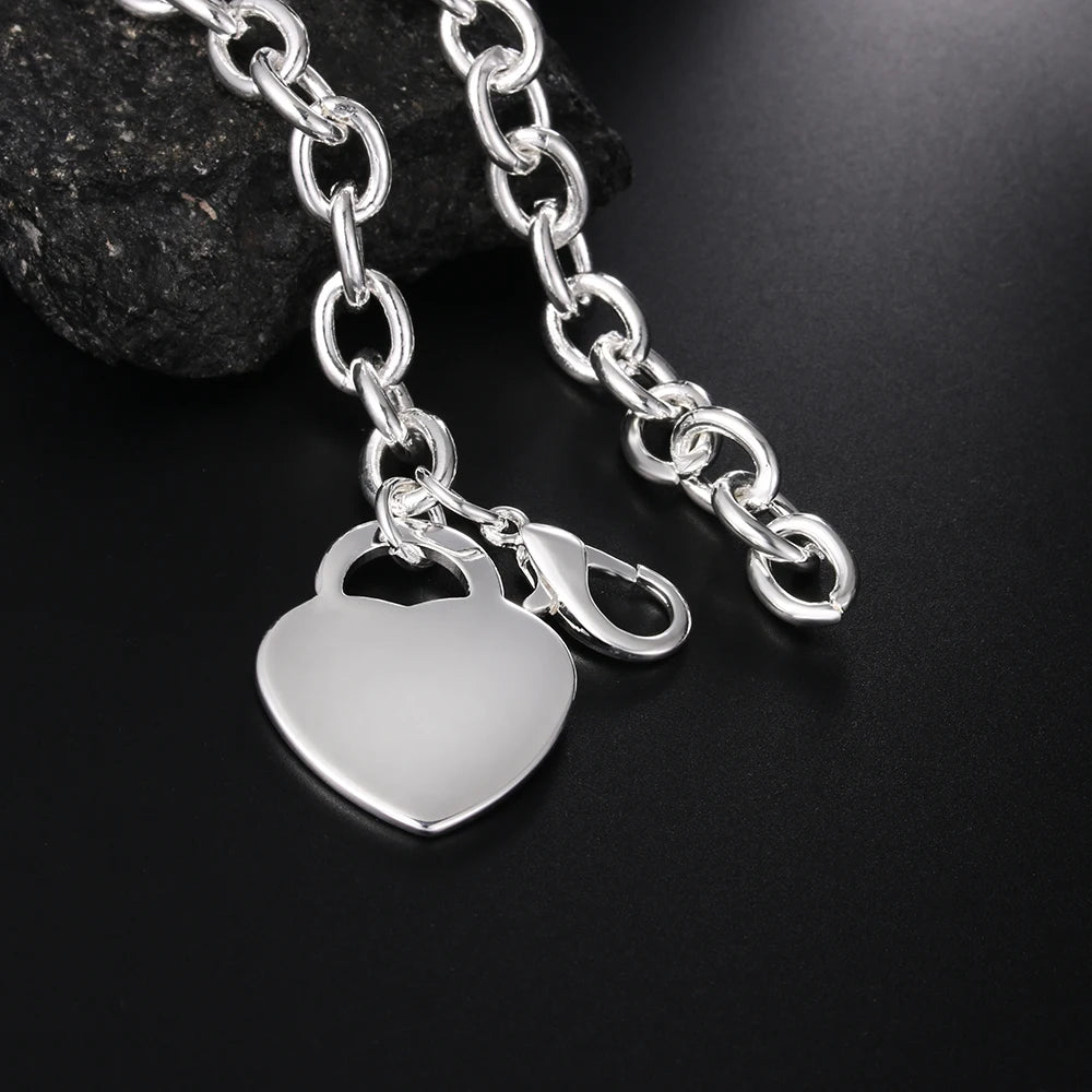 925 Silver Heart Bracelet for Women Wedding Party Jewelry