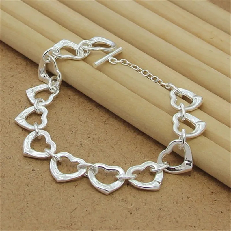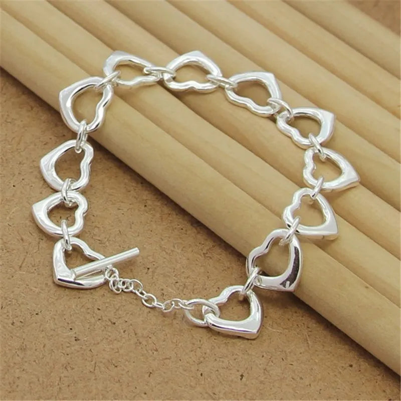 Add a touch of elegant charm to your party look with this 925 silver heart chain bracelet. It is a perfect accessory for women to enhance their style and make a statement.