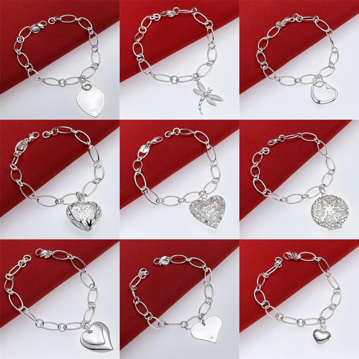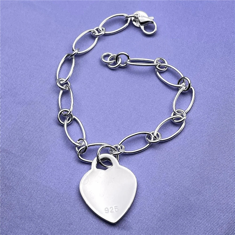 925 Silver Heart Charm Bracelet for Women Wedding Christmas