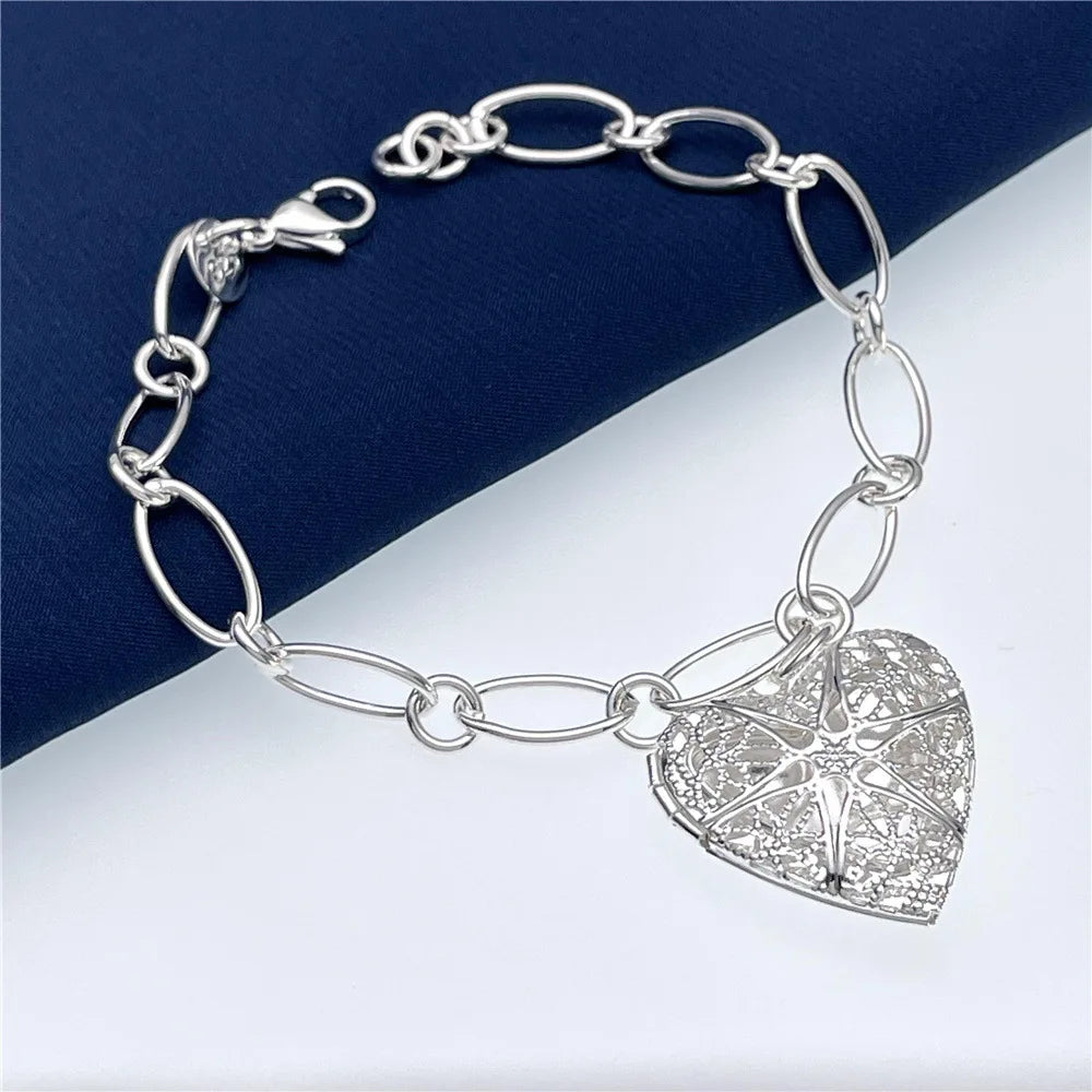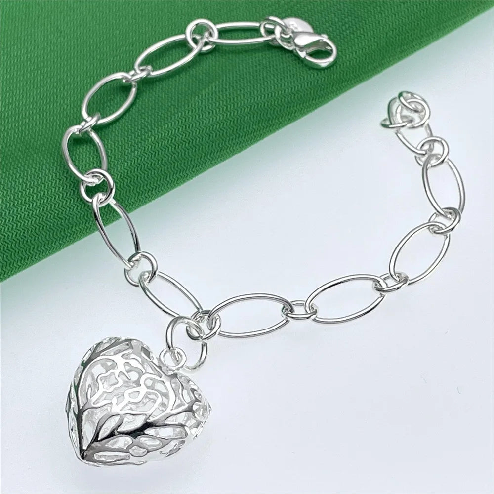 Add a touch of elegance to your outfit with this stunning 925 Sterling Silver Heart Charm Bracelet. Perfect for weddings, parties, or Christmas celebrations.