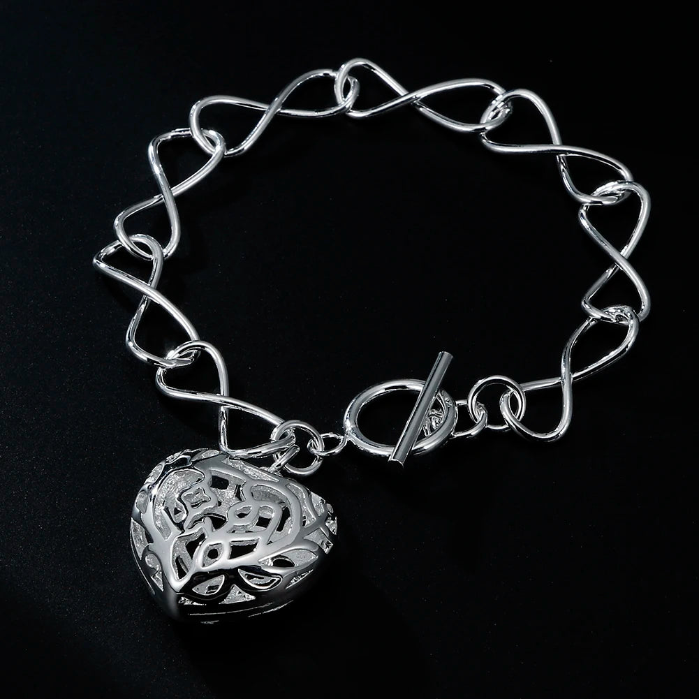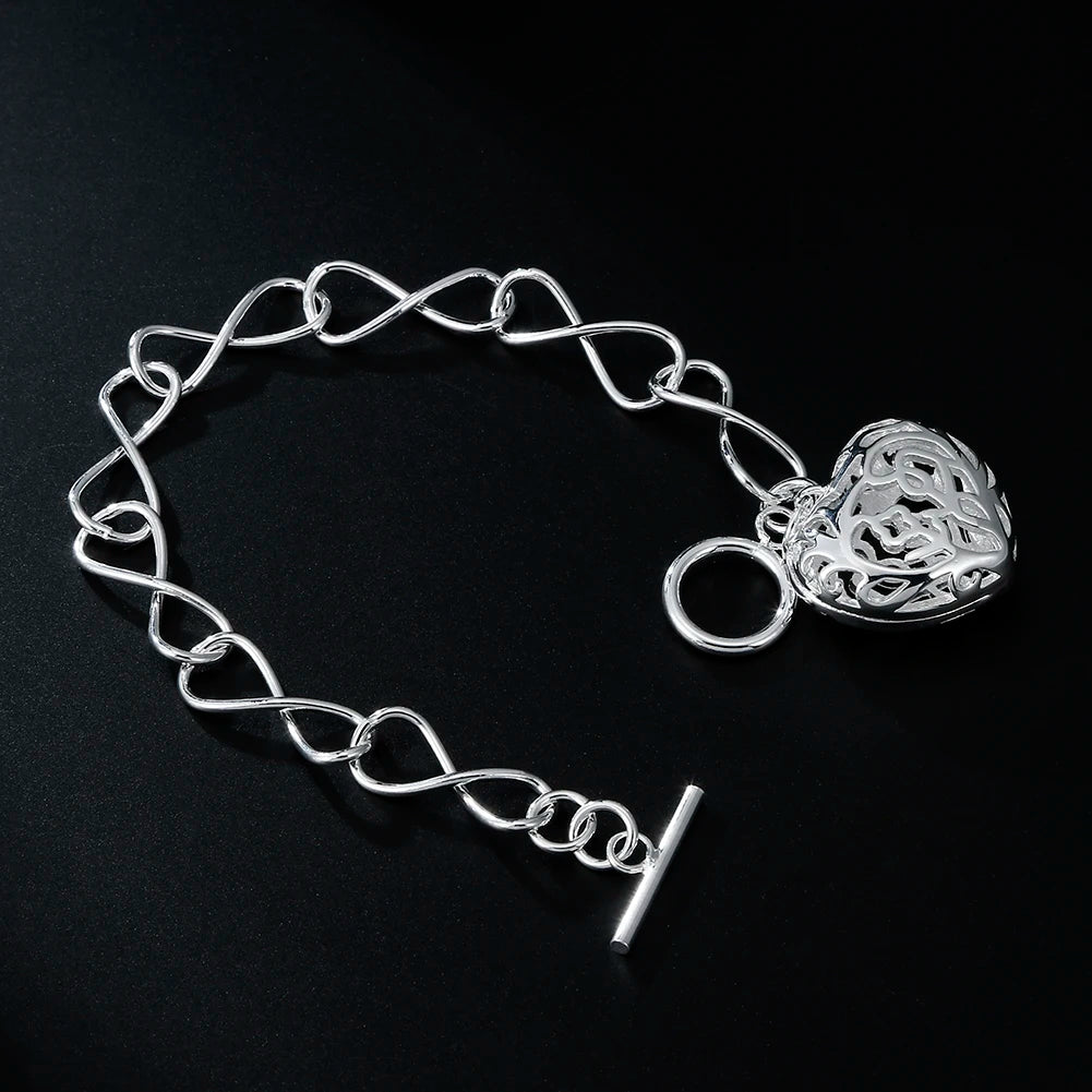 Elegant 925 sterling silver hollow heart bracelet perfect for parties, weddings, and holidays.