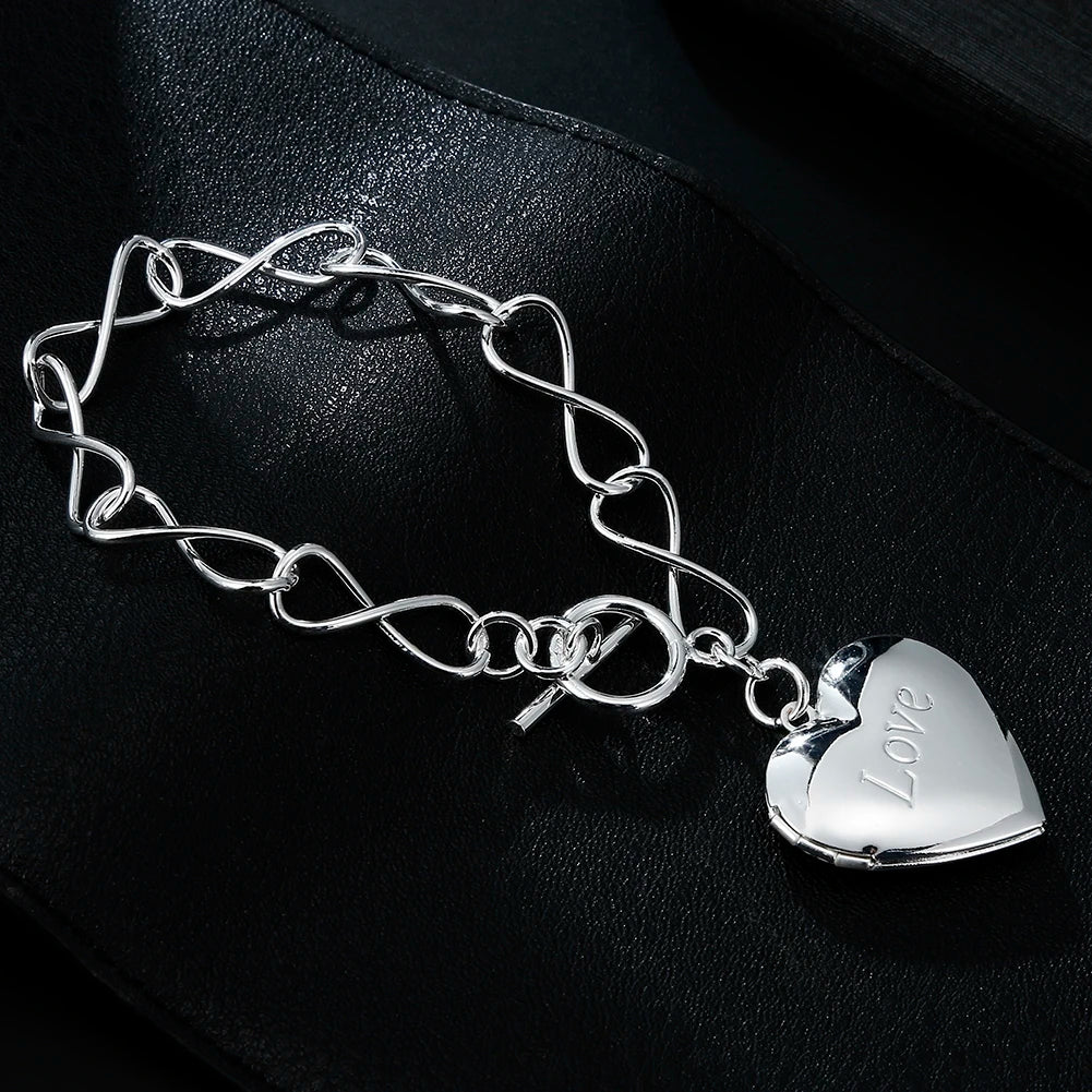 Elegant 925 Sterling silver charm bracelet perfect for parties, weddings, and Christmas. Showcase your love with this beautiful heart frame design.
