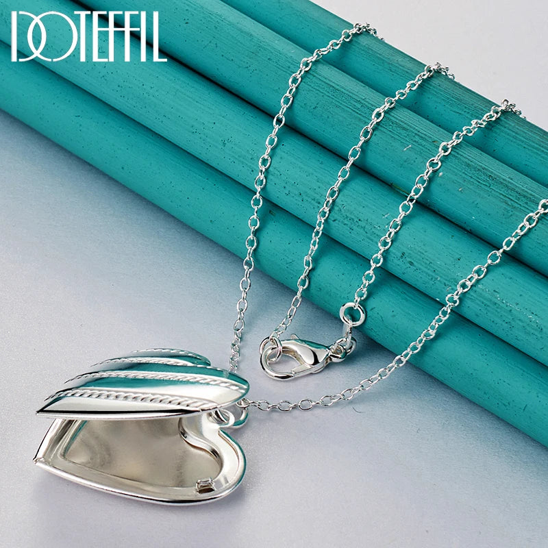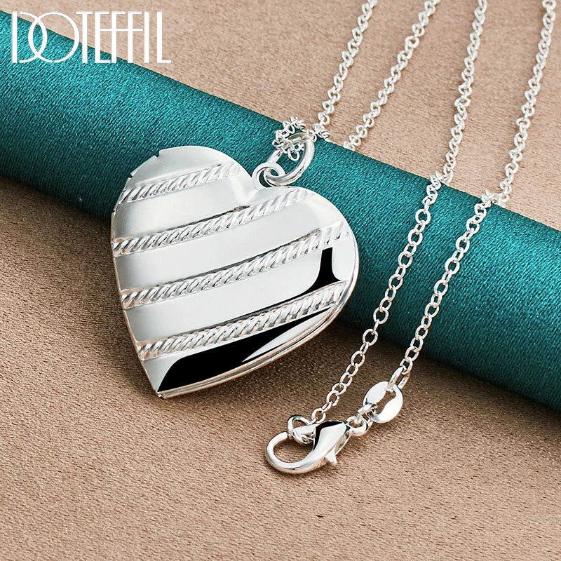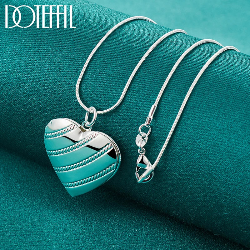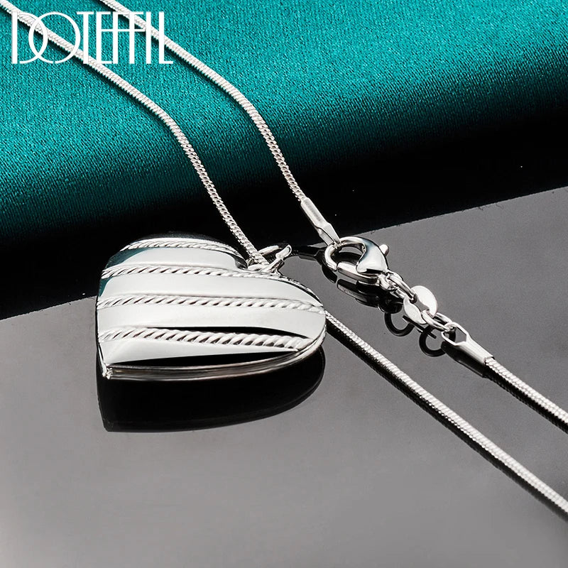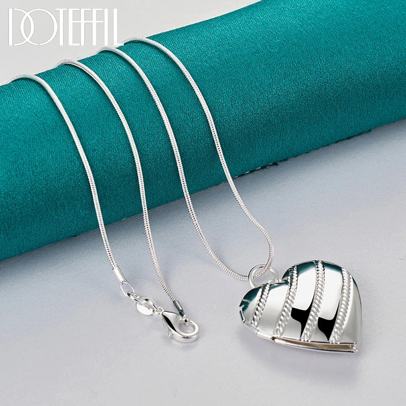 This stunning necklace features a heart-shaped photo frame pendant on a snake chain. Perfect for weddings or as a charming gift.