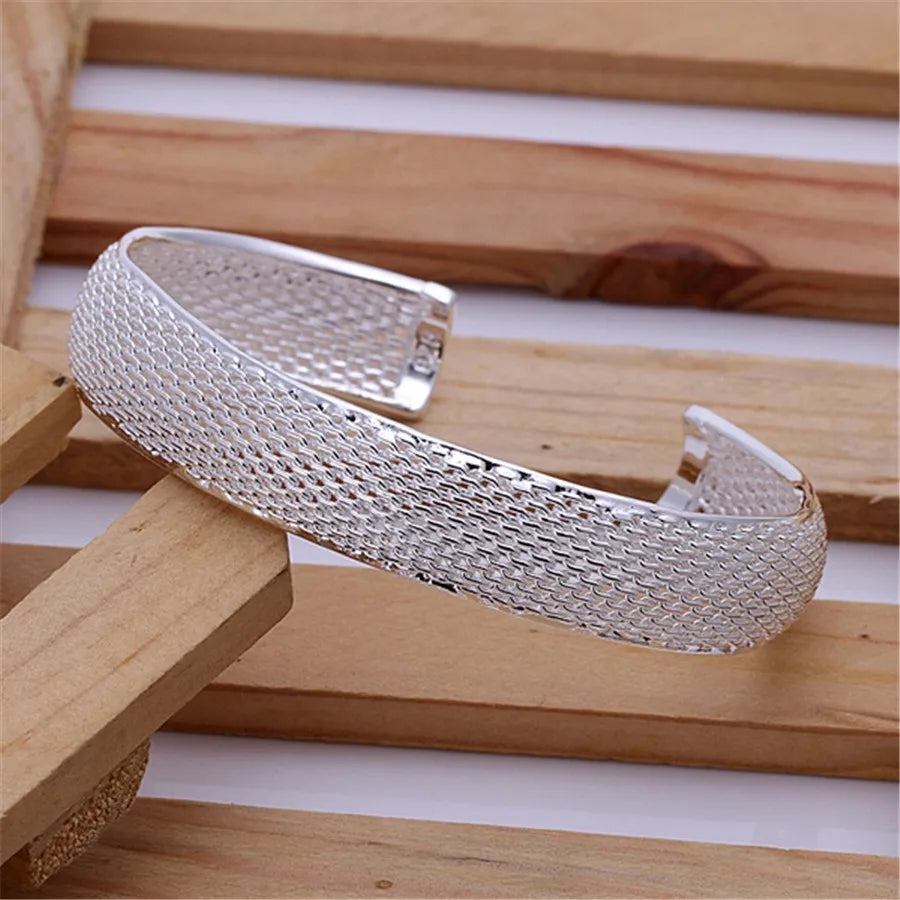 Elegant and stylish, this 925 sterling silver net bangle bracelet is the perfect accessory for parties and weddings. Adjustable design for a perfect fit.