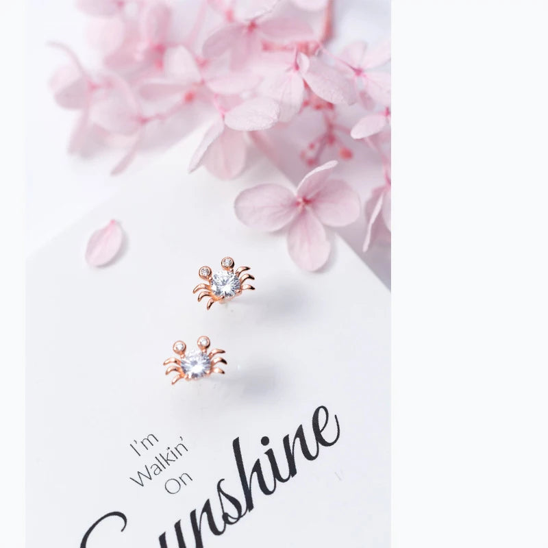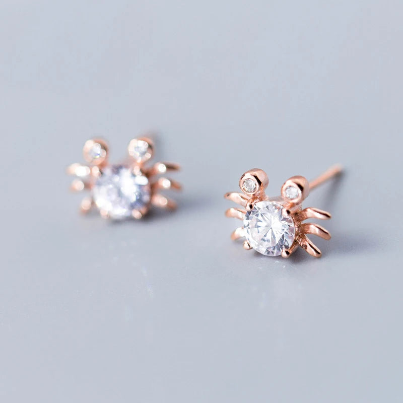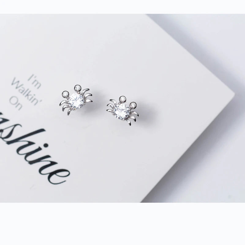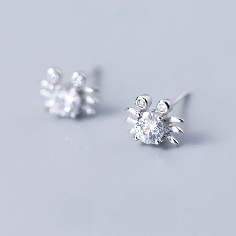 Shine with these adorable crab stud earrings featuring small clear CZ stones. Crafted with 925 sterling silver, perfect as a gift for any occasion.