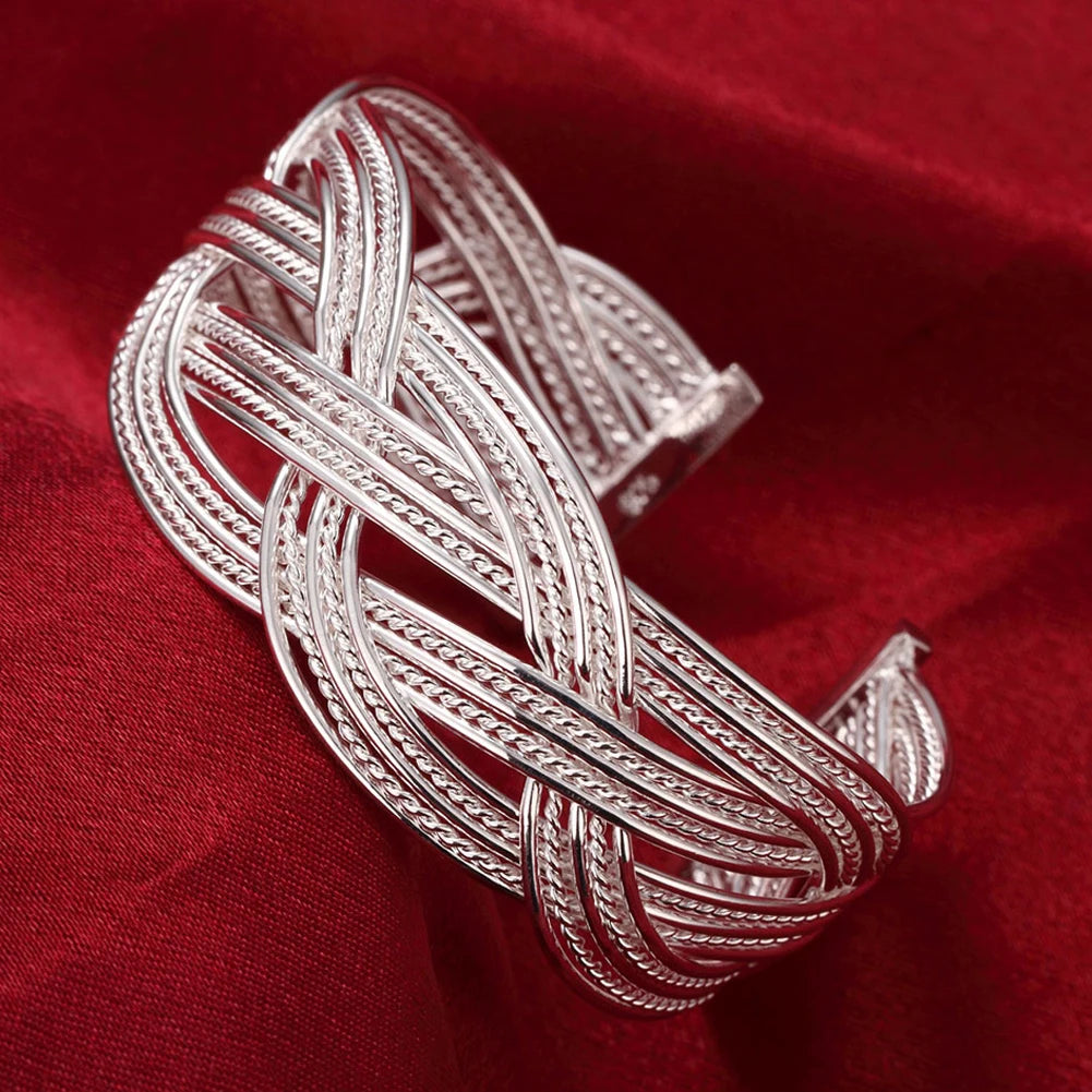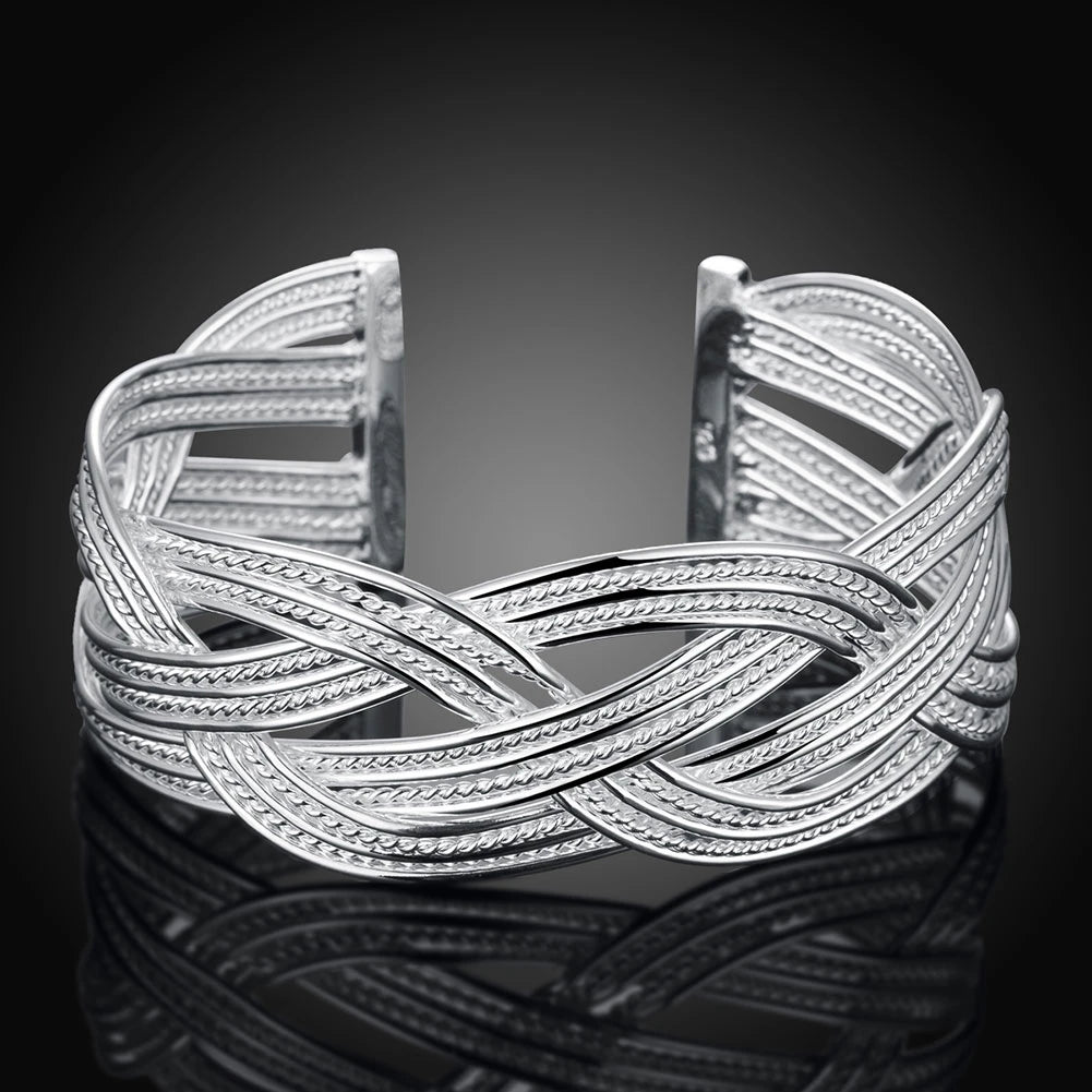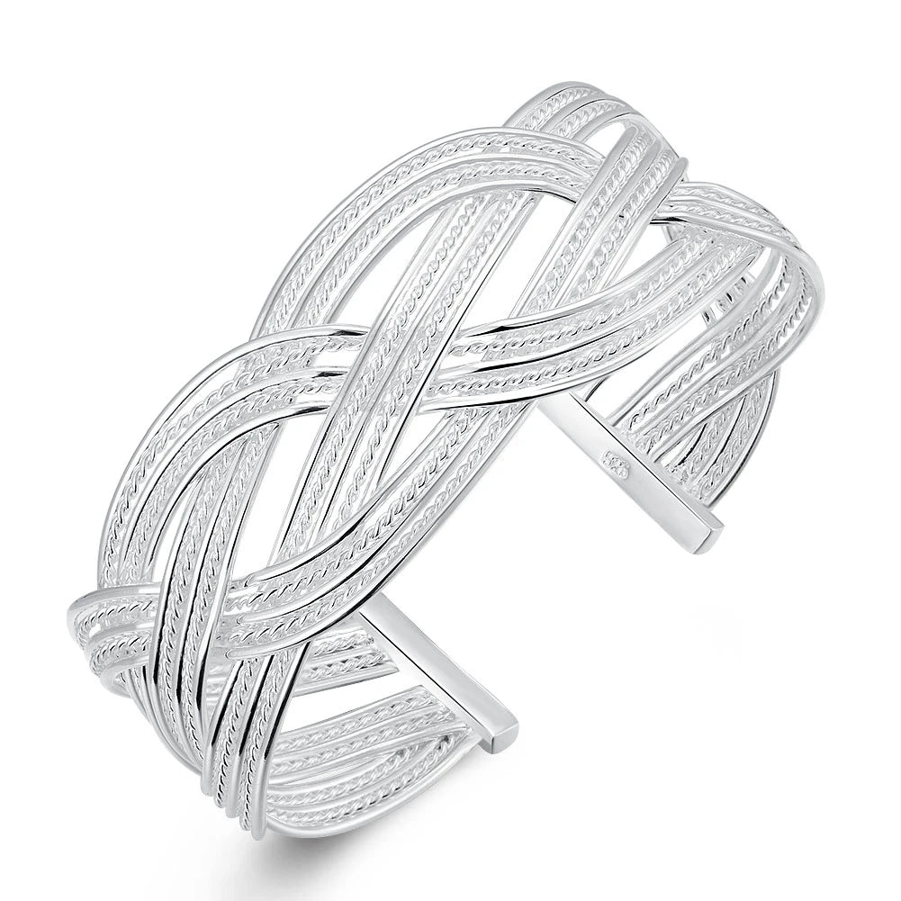 925 Silver Open Cuff Bracelet for Women Men