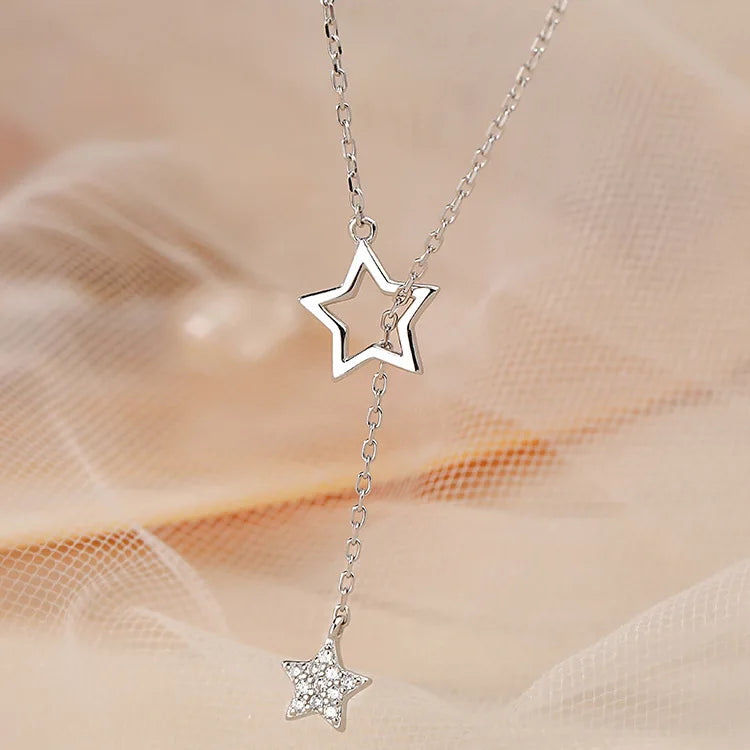 Elevate your style with this elegant 925 silver star pull necklace featuring a tassel pendant. Perfect for adding a touch of sophistication to your look.