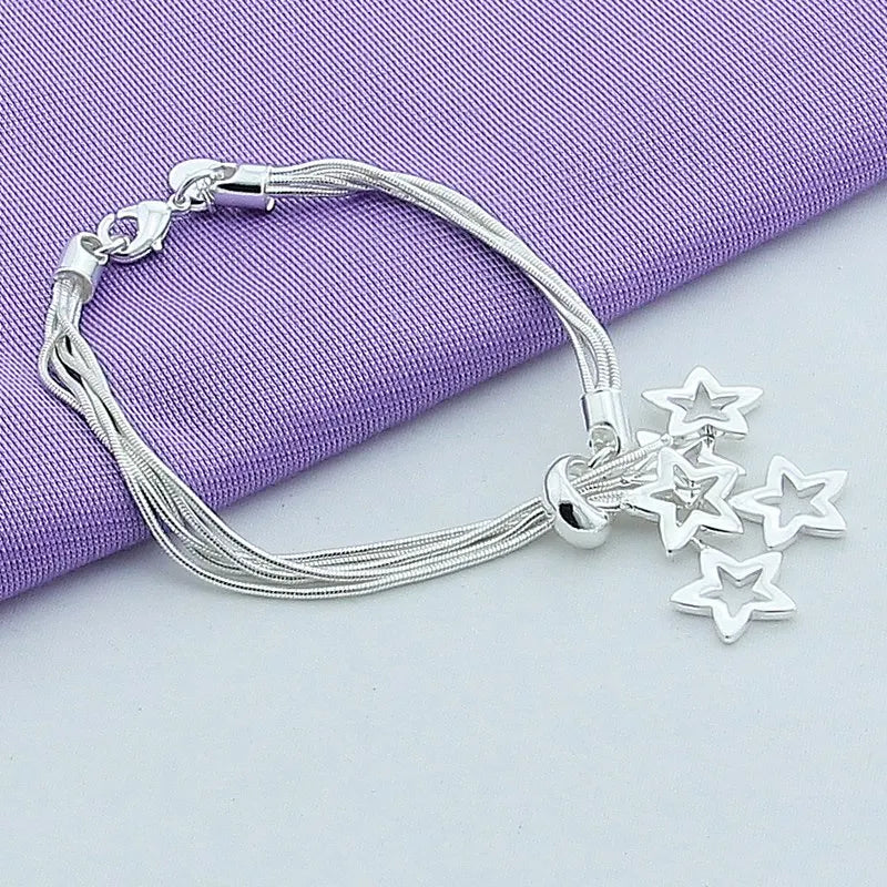 Elegant 925 sterling silver bracelet featuring a stylish design of star snake bone. Perfect for weddings, gifts, or everyday wear.