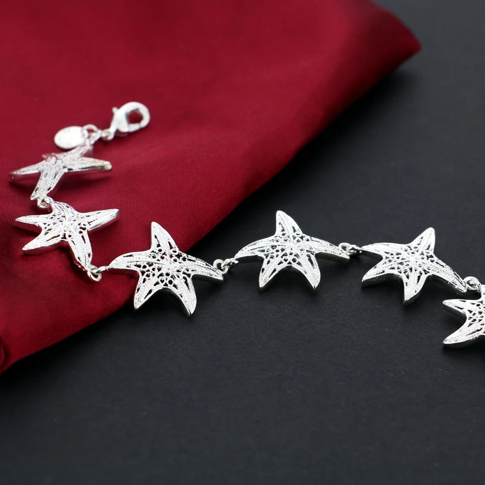 Elegant 925 sterling silver bracelet featuring a pretty starfish design. Perfect for weddings, parties, and Christmas celebrations.