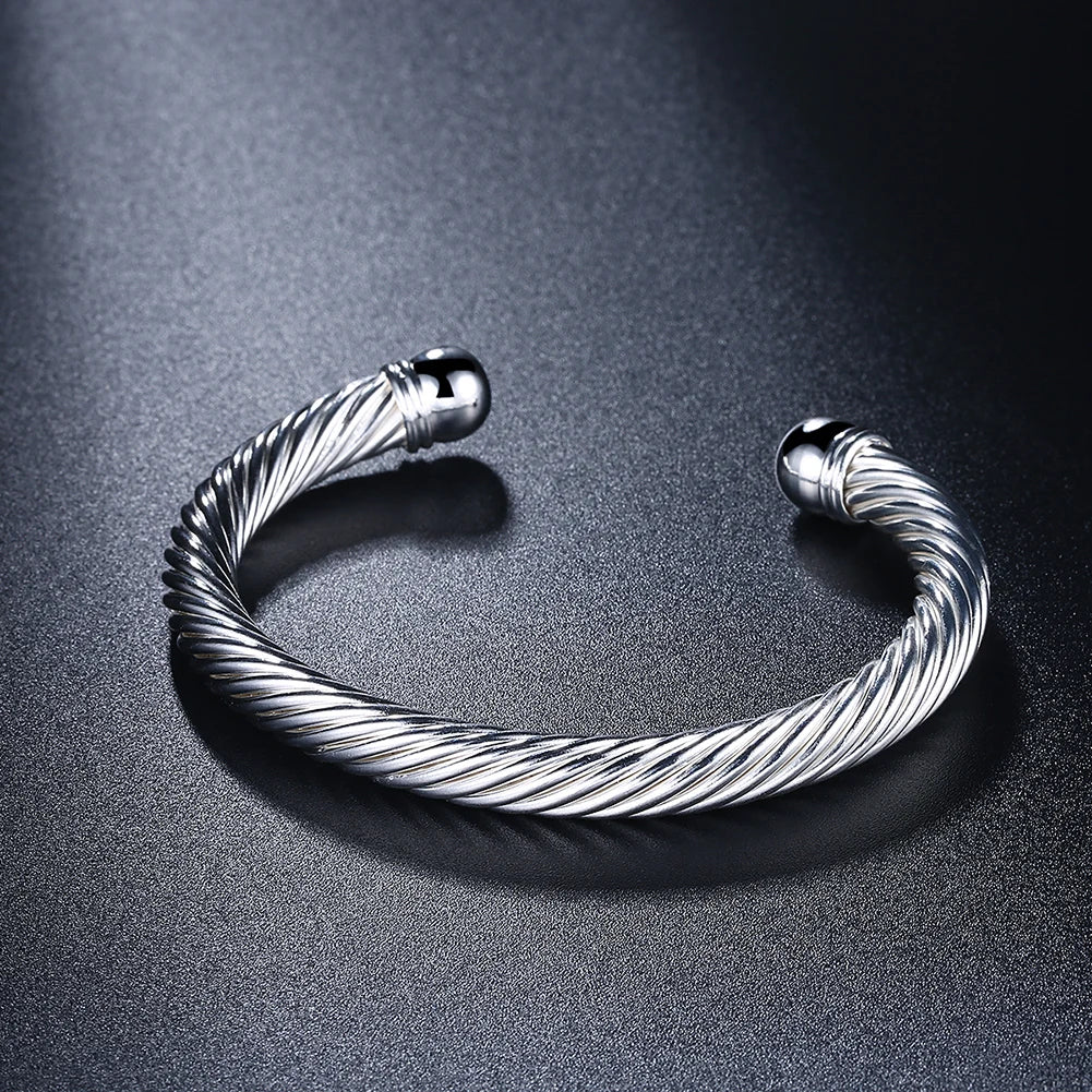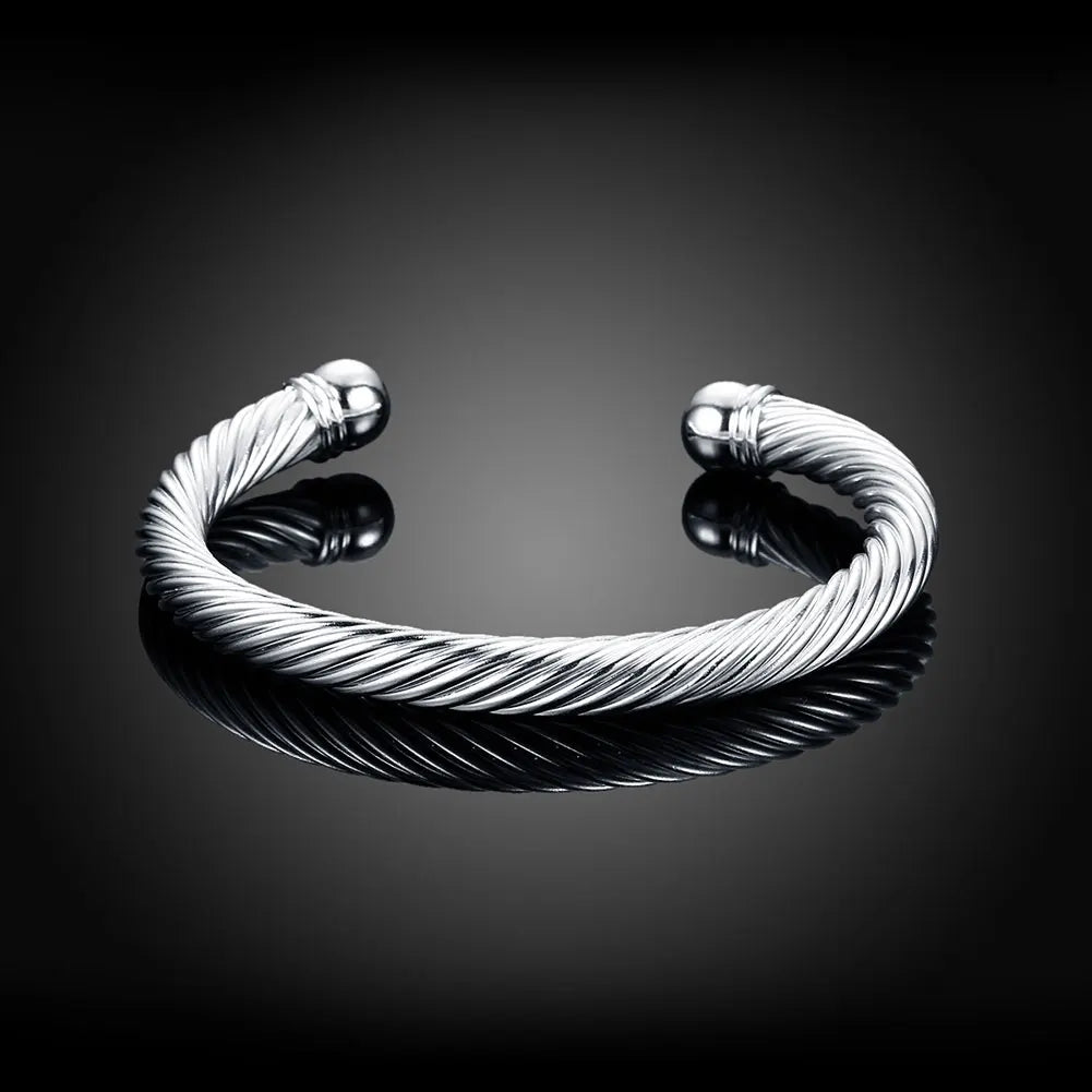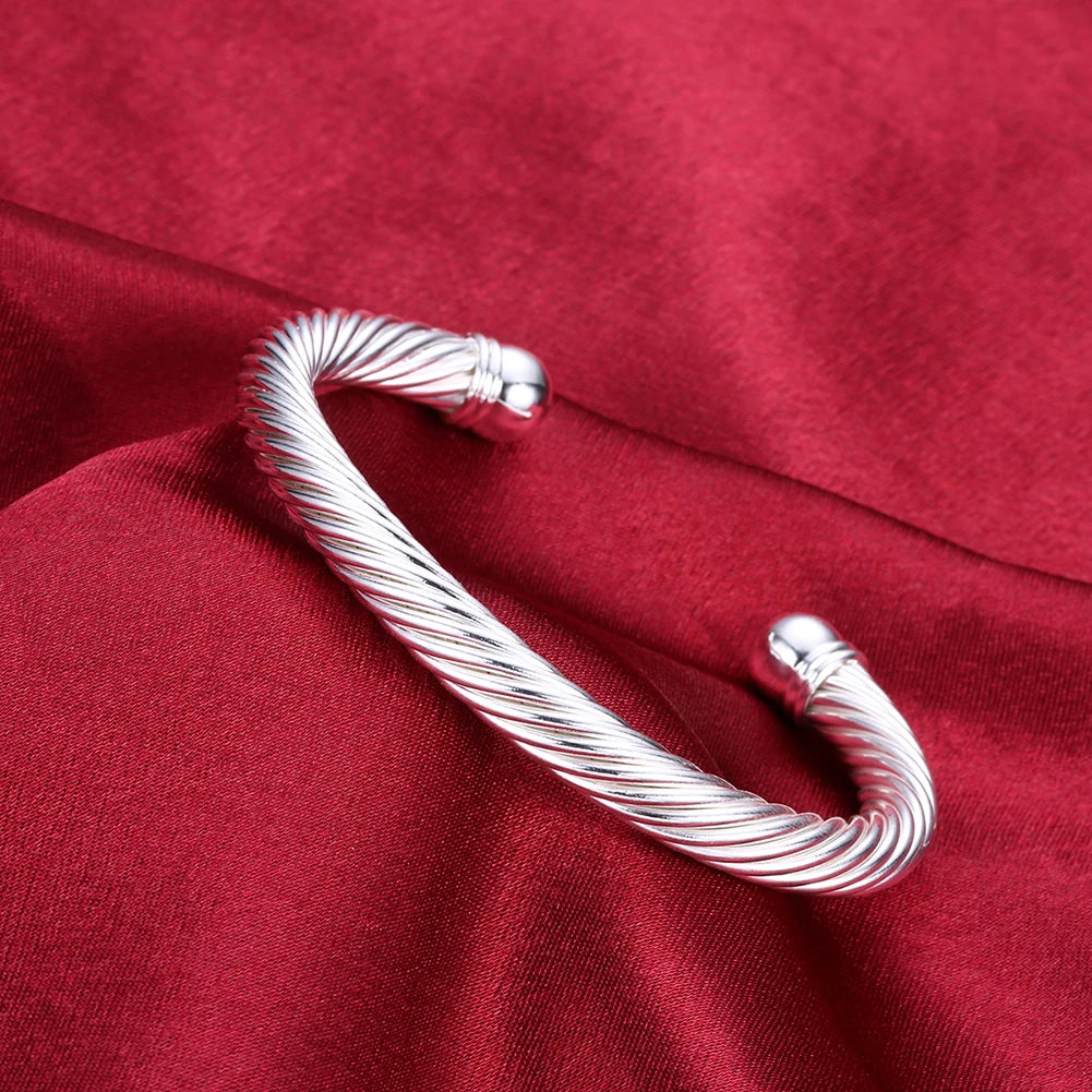 Add a touch of elegance to your party, wedding, or Christmas outfit with this stunning 925 sterling silver charm twisted wire bangle bracelet. Makes a perfect accessory for any occasion.