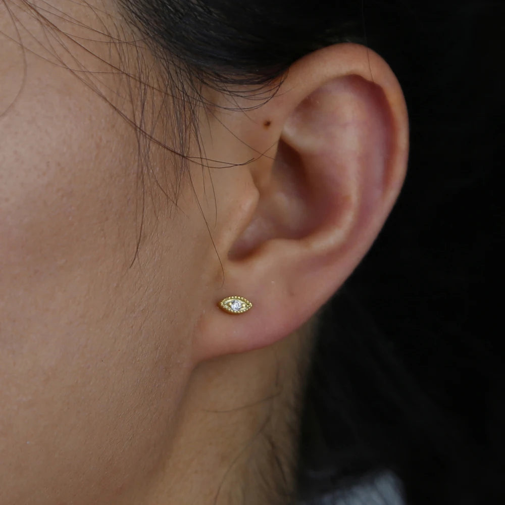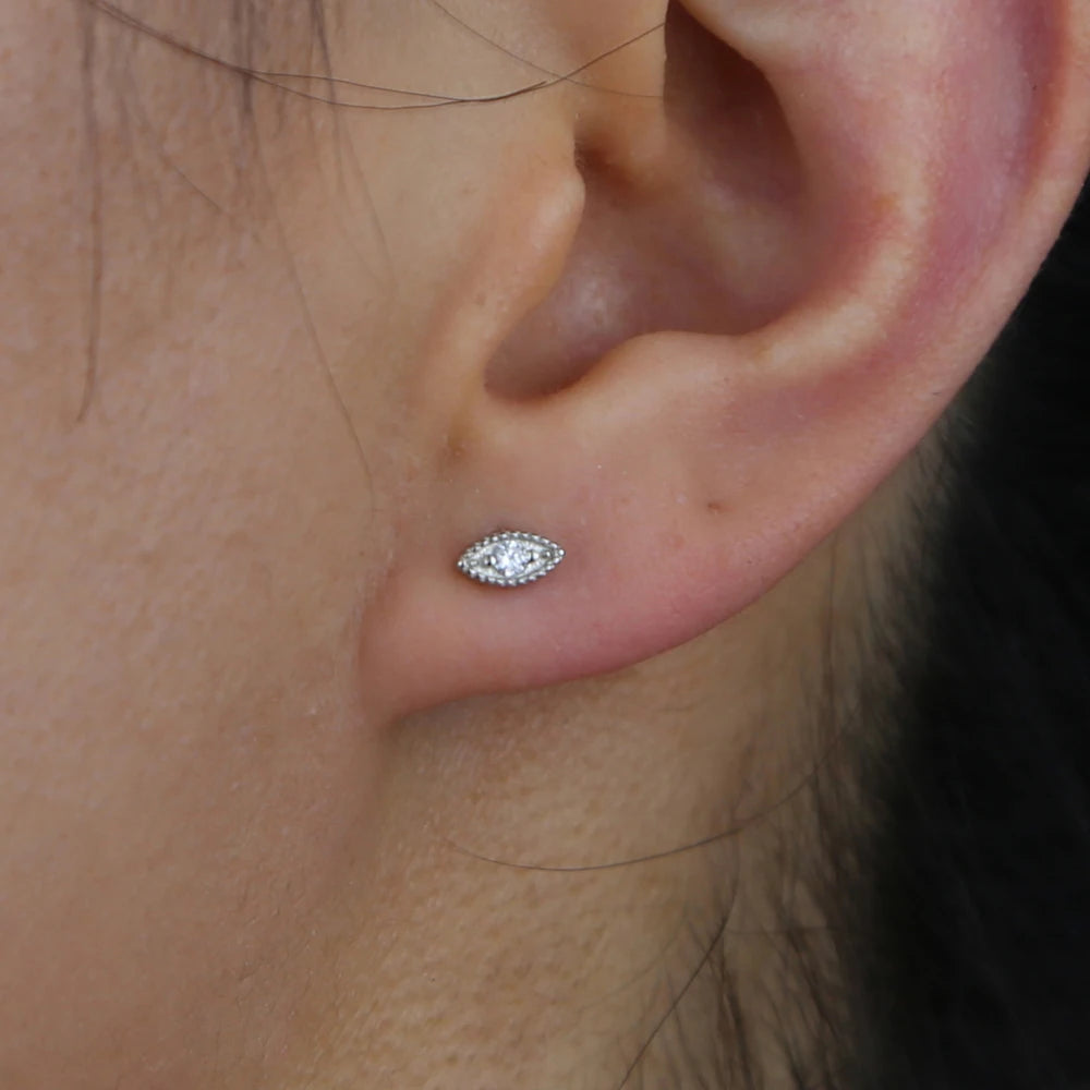 Beautiful evil eye stud earring made of 925 sterling silver, perfect for girls and women who love dainty jewelry.