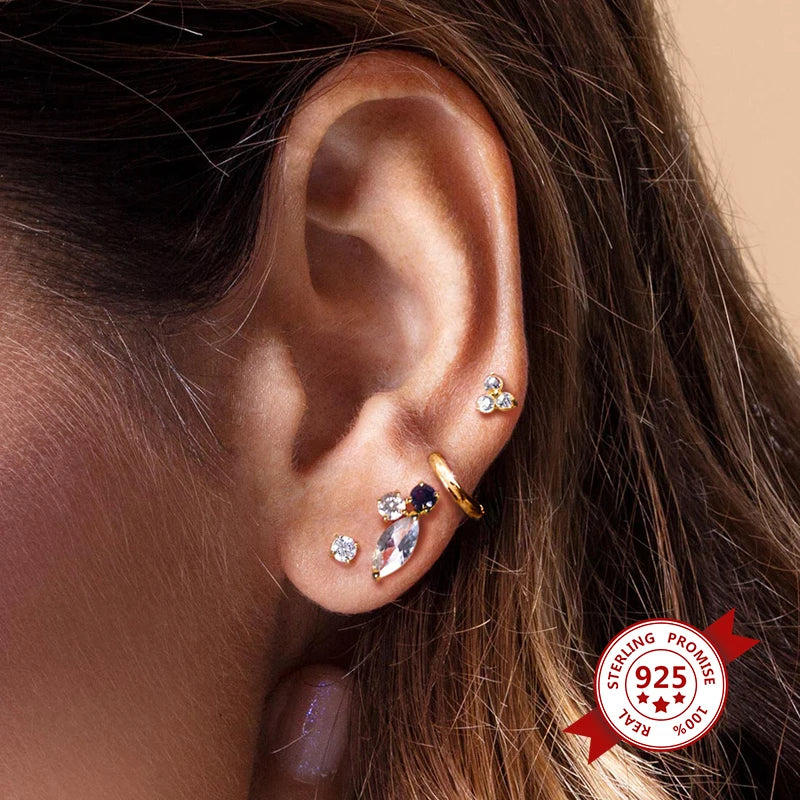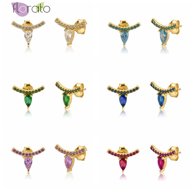 Elegant crystal stud earrings made of 925 sterling silver with water drop CZ design, perfect for women's jewelry collection.