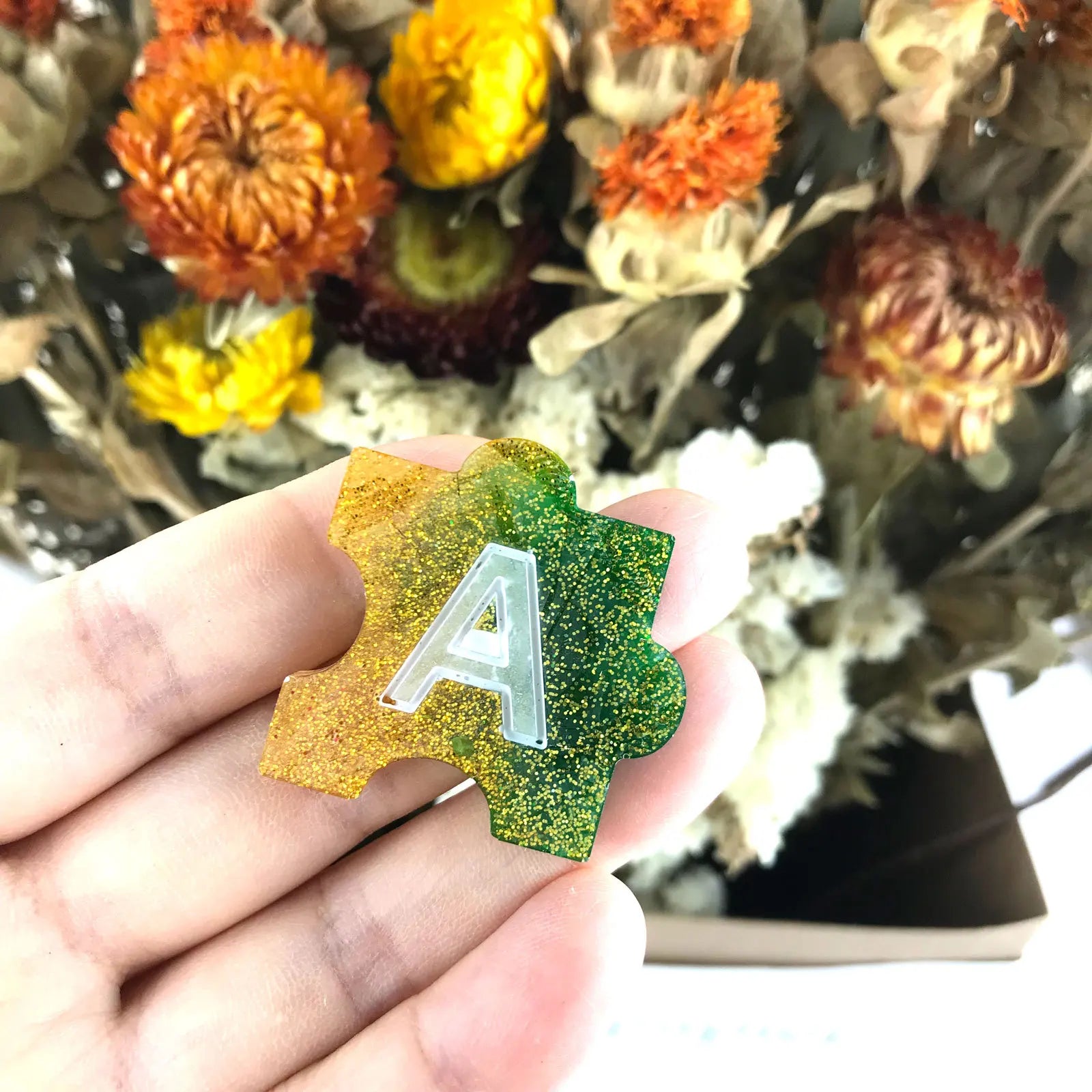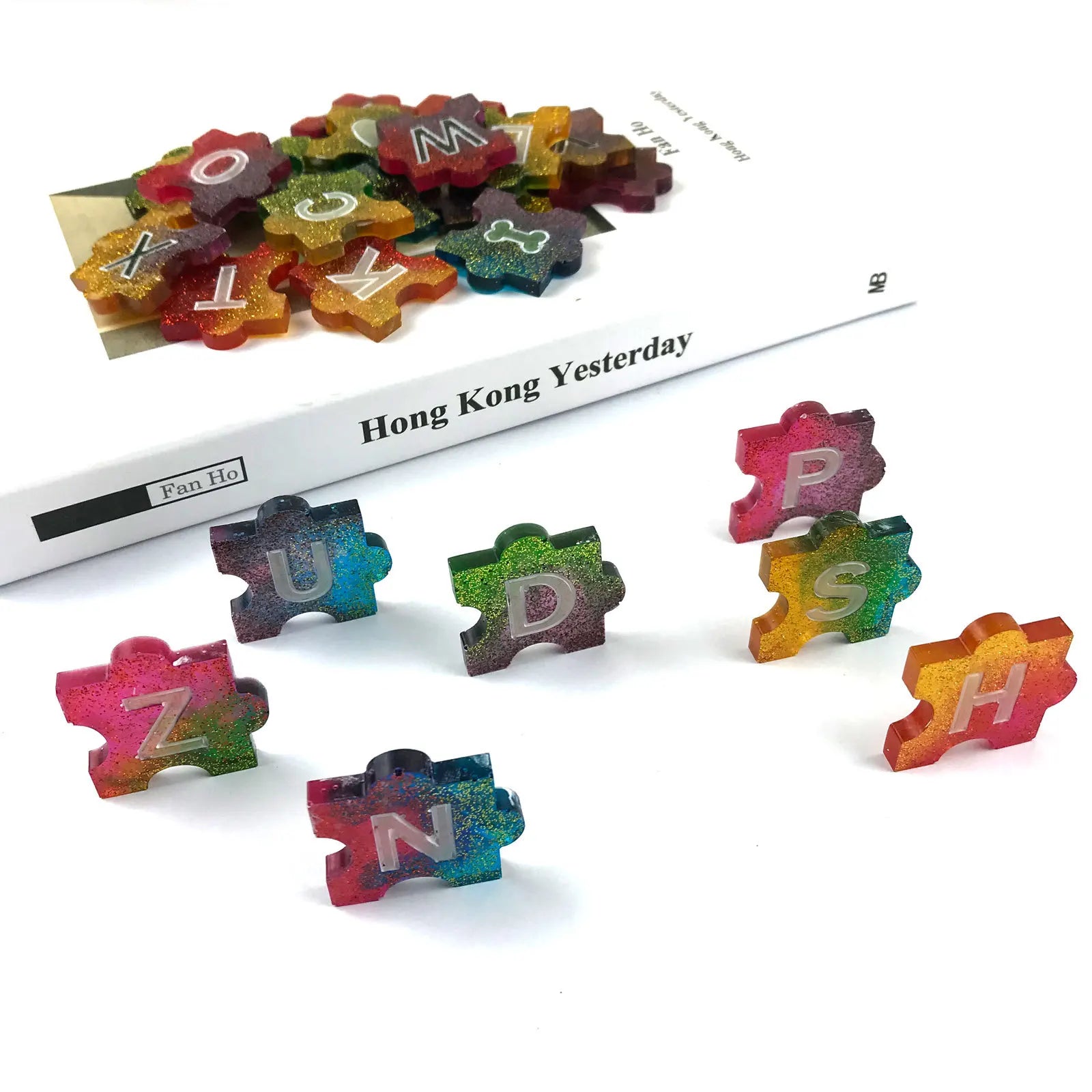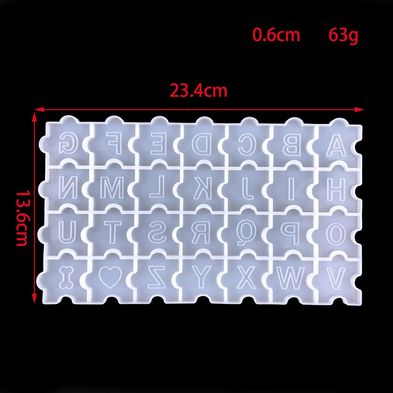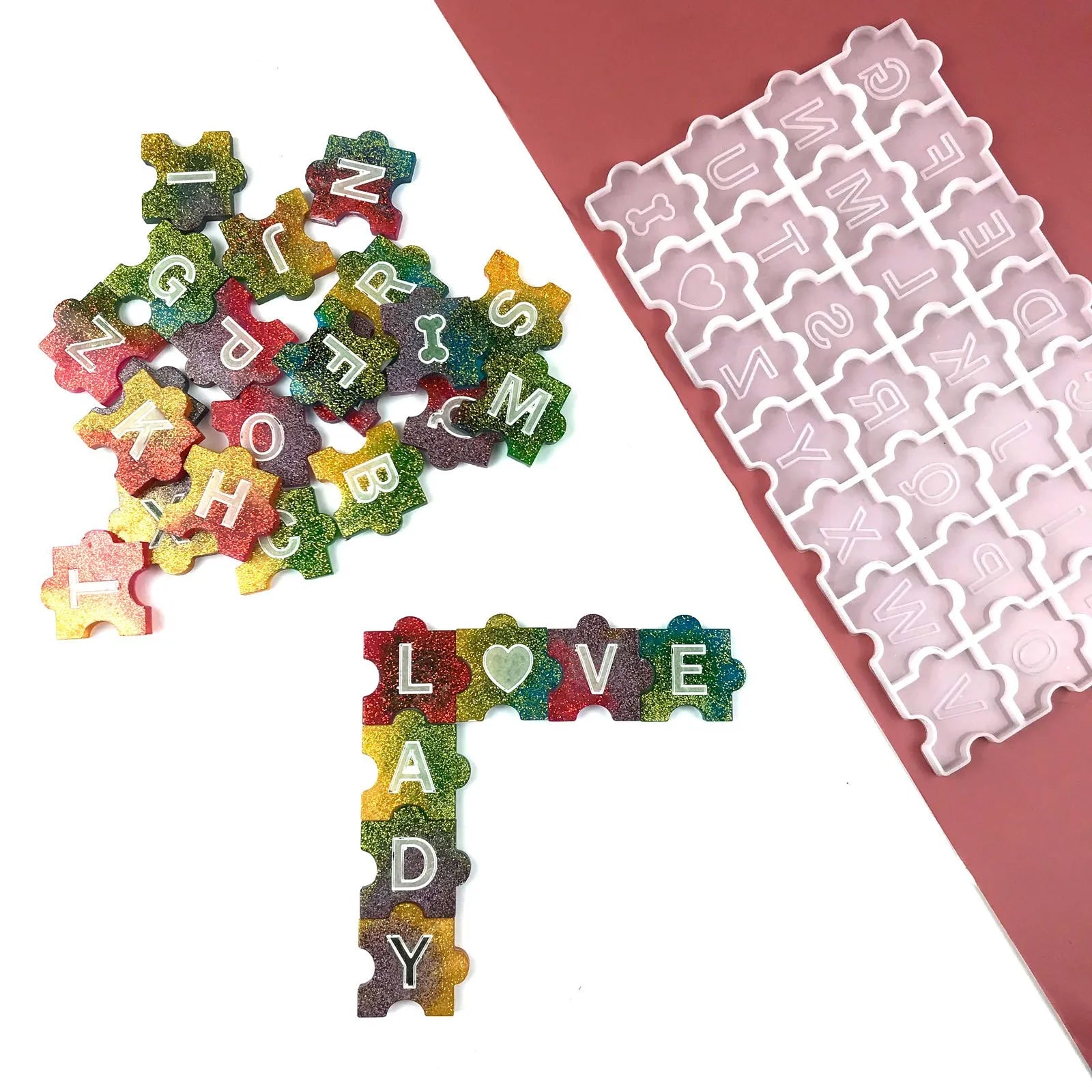 Create unique alphabet puzzle game keychains and jewelry with this silicone mold. Ideal for resin casting projects.