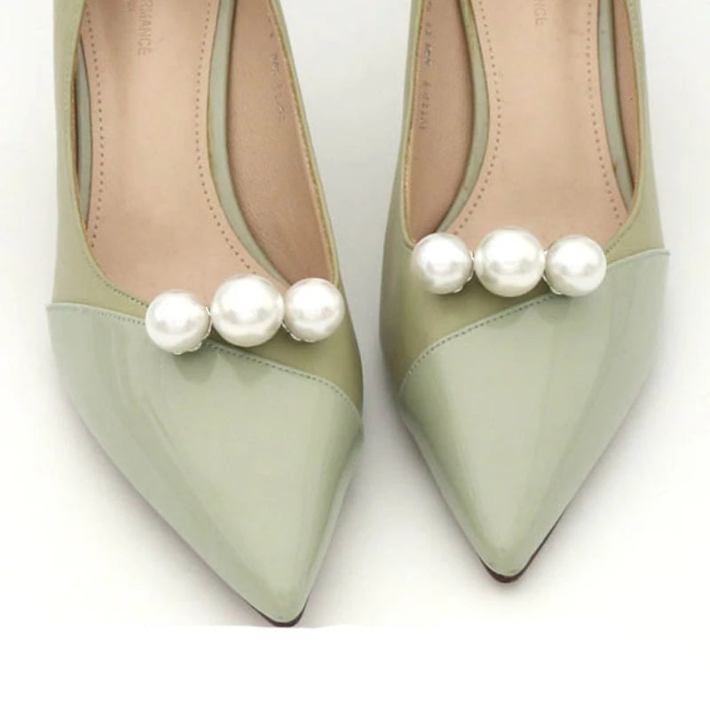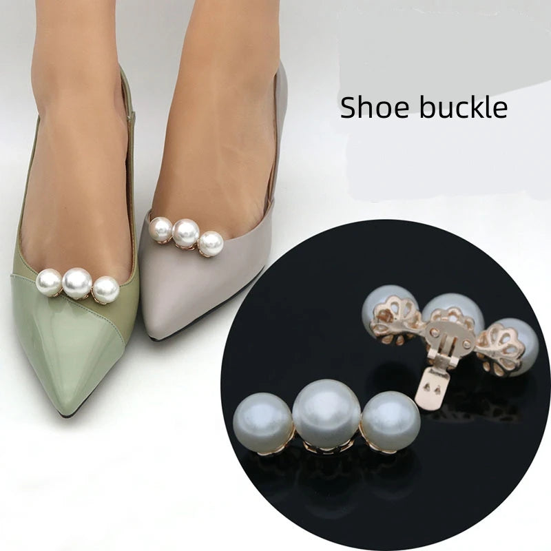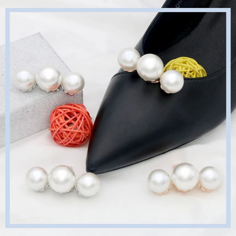 Elevate your wedding shoes with these elegant and sparkly shoe clips featuring rhinestones and silk flower charms. Add a touch of glamour and style to your high heels.
