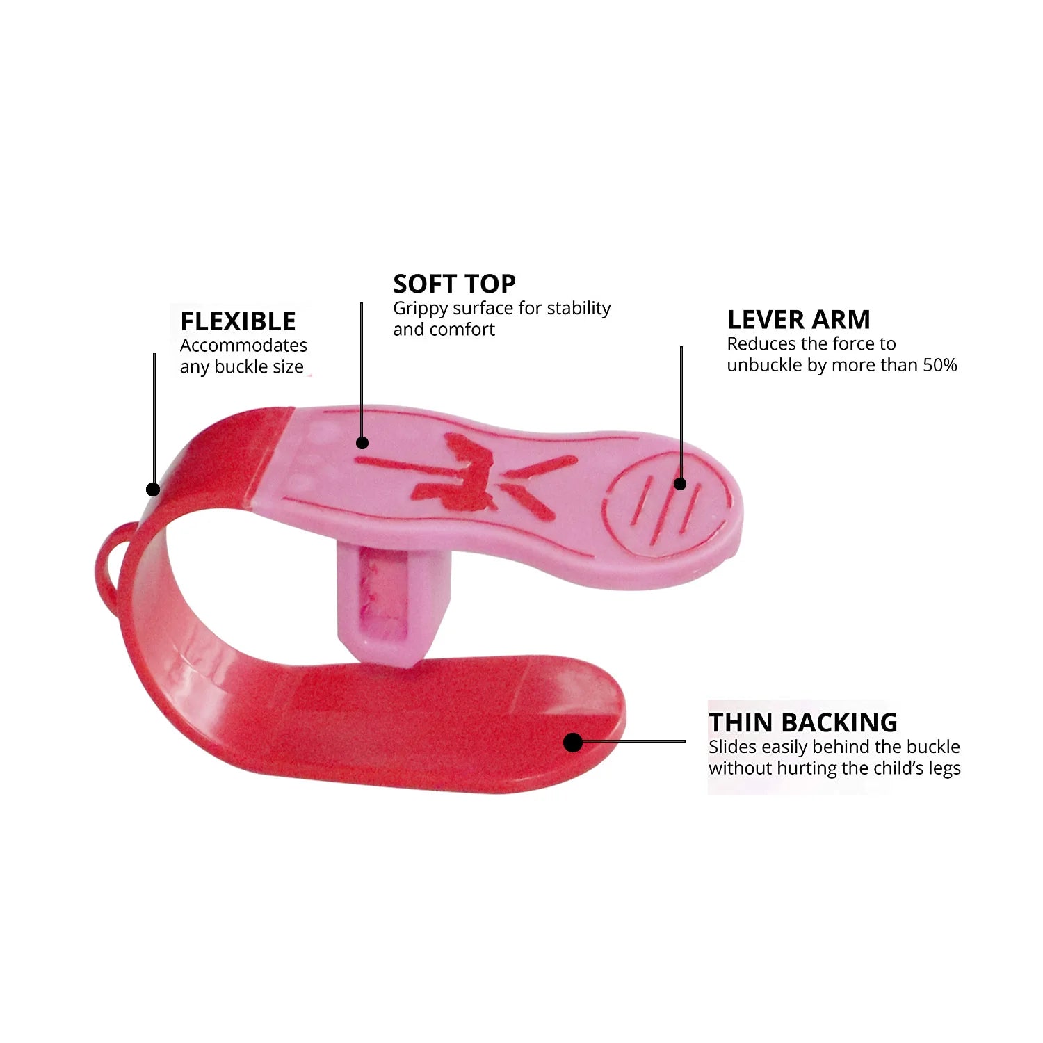 This car seat buckle release tool is designed to help parents and grandparents easily unbuckle a child's car seat without struggling.