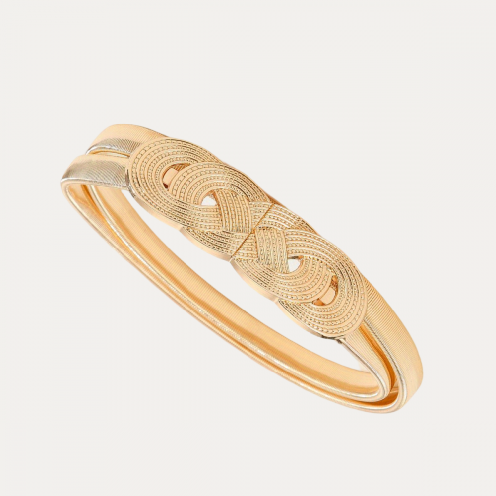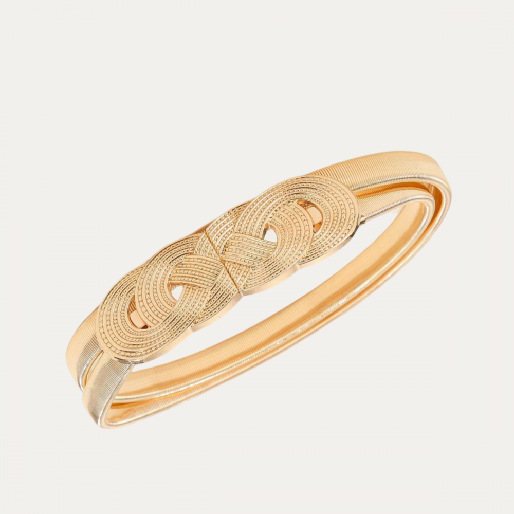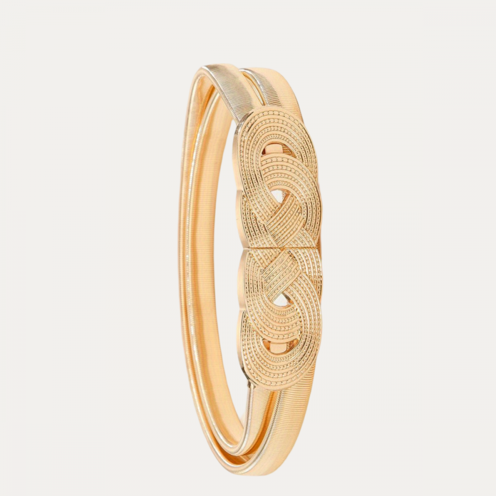 Bling Queen is an affordable fashion jewellery brand with various product types like bracelets, necklaces, earrings, rings, etc. suitable for women, men and kids. The Twisted Chinese Knot Elastic Waist Belt is a striking accessory that combines elegance with cultural artistry. Crafted from high quality elastic, this belt offers both comfort and versatility, making it perfect for various body types and styles. The belt features a elastic band that stretches comfortably, ensuring a snug fit while allowing for ease of movement. The gold toned accents enhance its luxurious feel. At the center, the distinctive twisted Chinese knot serves as a focal point. This traditional symbol of unity and eternity adds a touch of cultural significance, making the belt not just a fashion statement but also a meaningful accessory. The golden hue of the belt radiates sophistication, making it an ideal complement to both casual and formal outfits.
