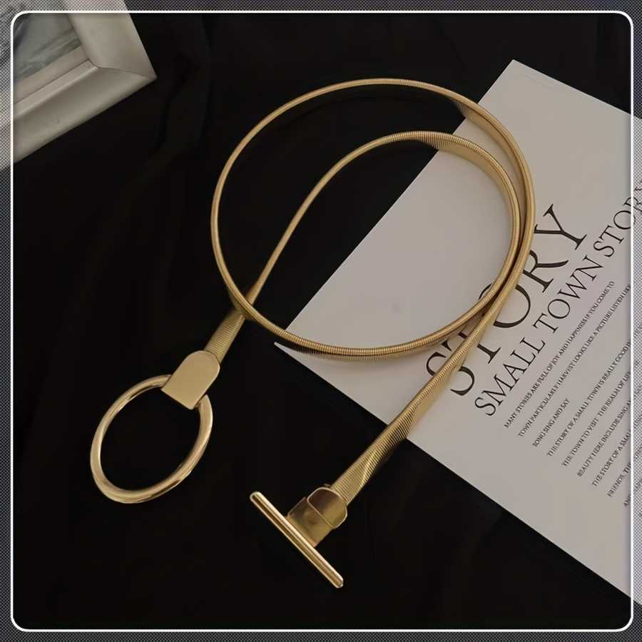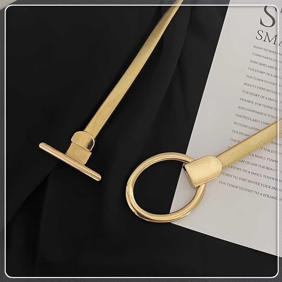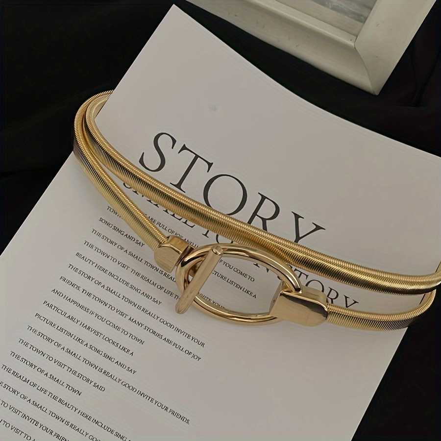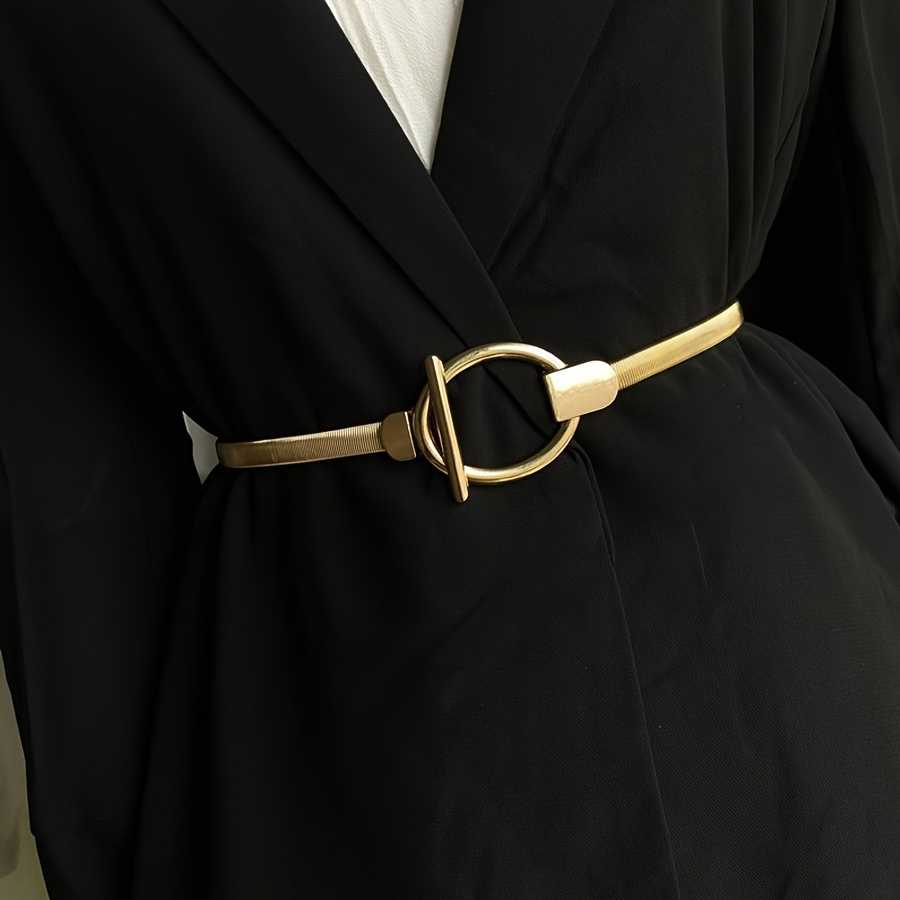 The Classic OT Buckle Elastic Belt is a stylish accessory that combines modern design with versatile functionality. Perfect for the contemporary woman, this belt is an essential addition to any wardrobe, enhancing both casual and dressy outfits. Crafted from high quality elastic, this belt provides comfort. The elastic construction allows for flexibility, making it easy to wear throughout the day without sacrificing style. Featuring a classic OT buckle, this belt adds a touch of sophistication to its design. The sleek buckle not only serves as a functional clasp but also acts as a stylish focal point, enhancing the overall aesthetic. The belt’s trendy golden hue adds a luxurious touch, making it an ideal accessory for both casual outings and formal occasions. Its shiny finish ensures that it stands out, elevating any outfit.