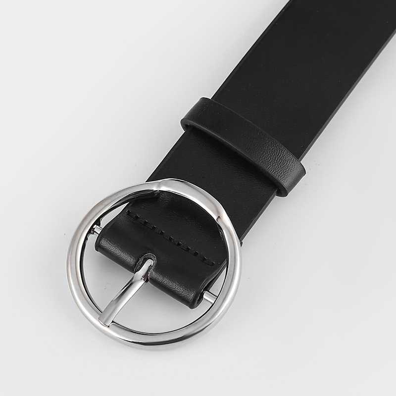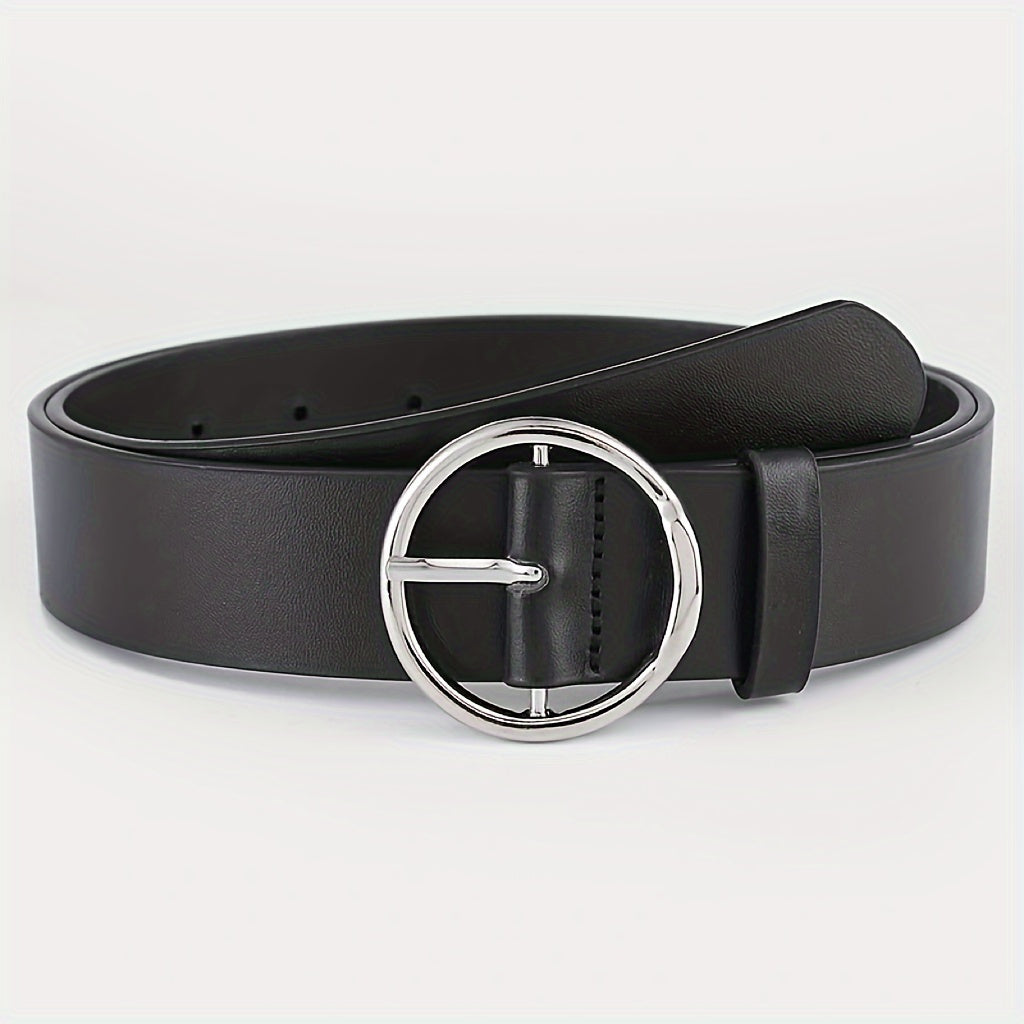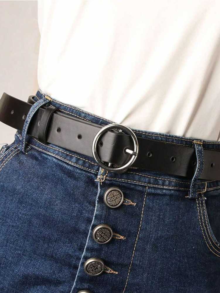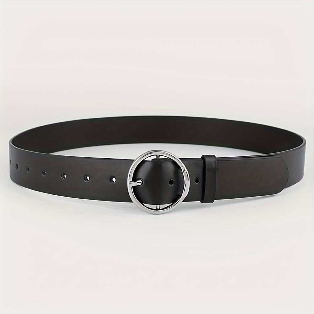 Classic Round Buckle Black Belt for Women Trendy Daily Accessory