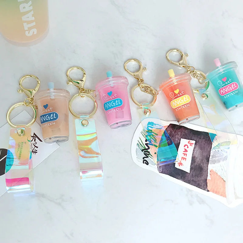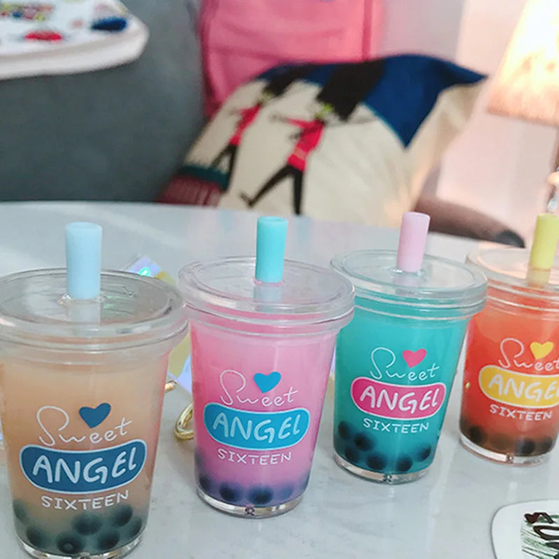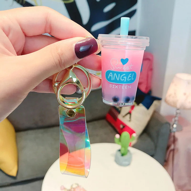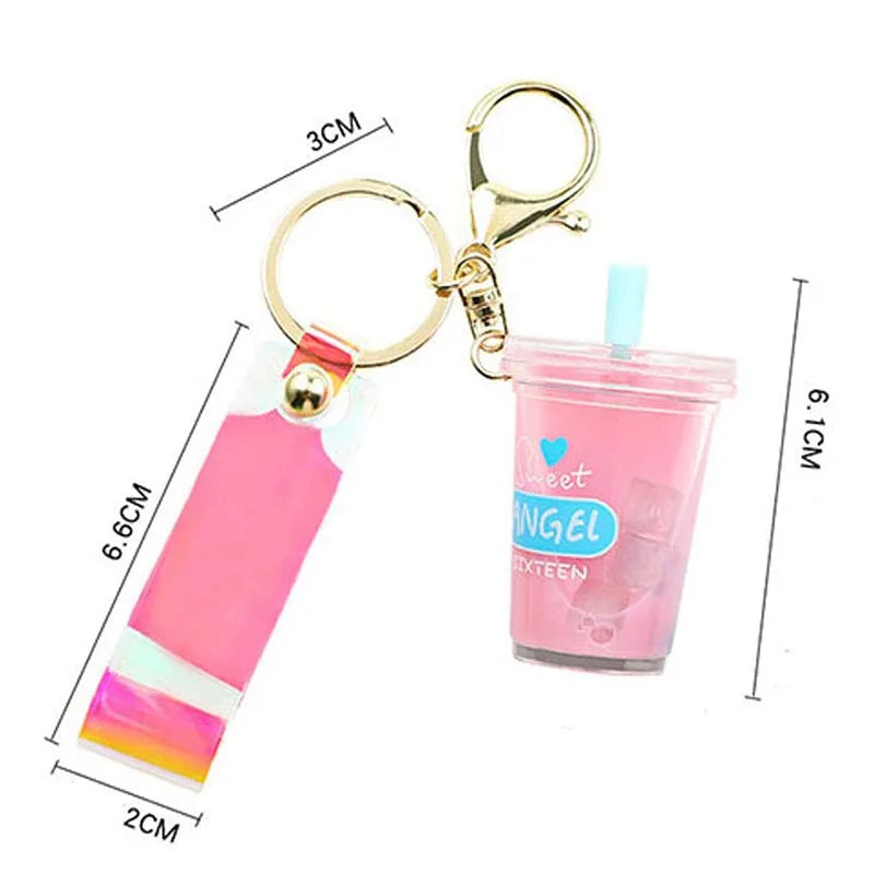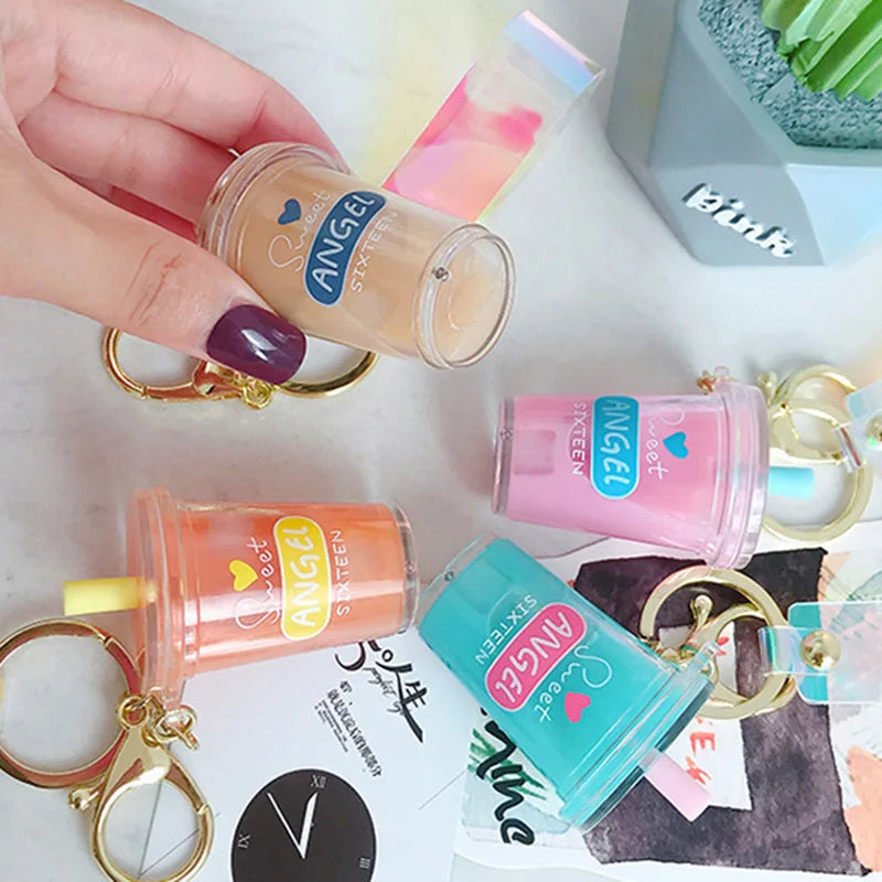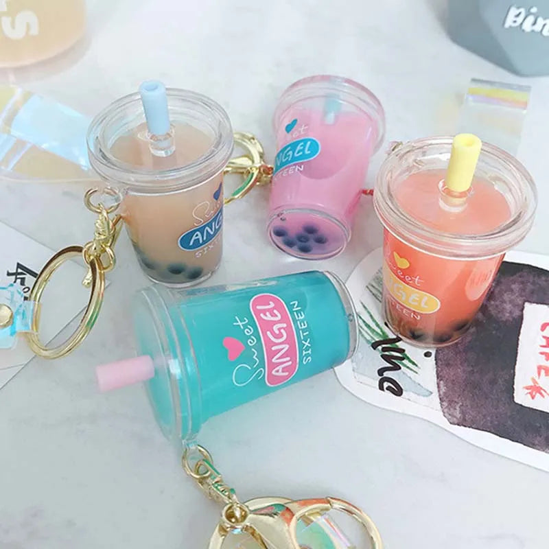 This adorable mini soft drink keychain features a coconut milk tea beverage design with moving liquid inside, perfect for bubble tea lovers. Carry it with you for a fun and quirky accessory!