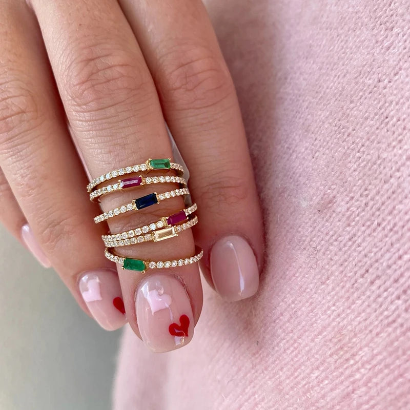 Elegant aguette cut zircon ring crafted from 925 sterling silver with 18K plating. Perfect for women and girls.