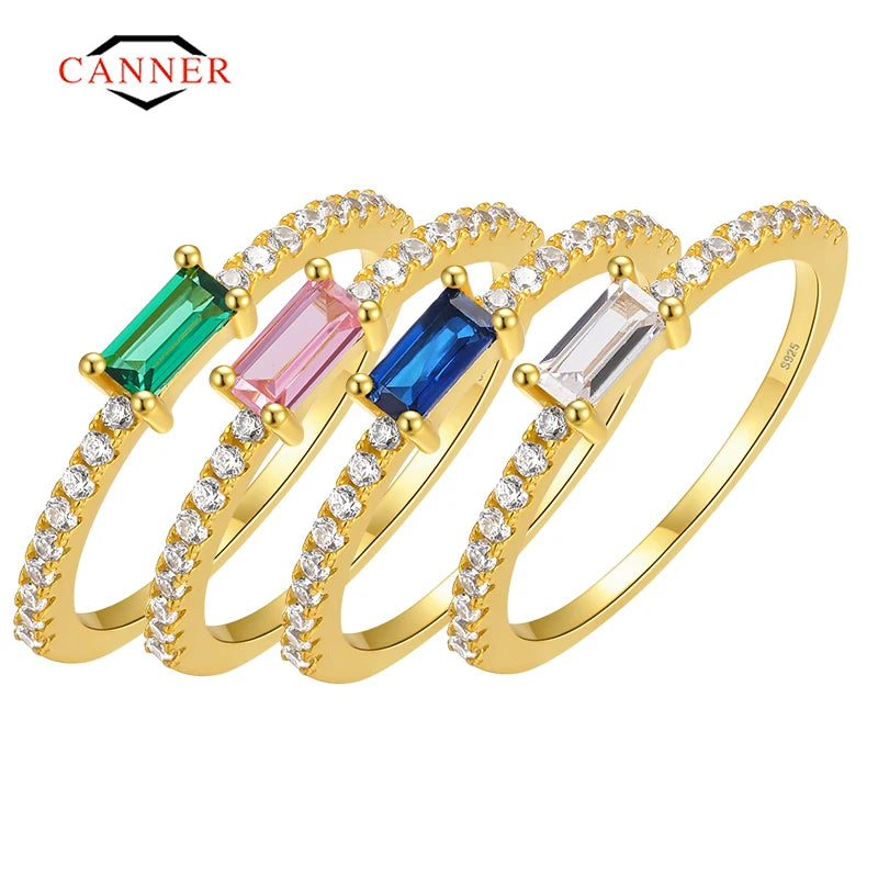 Colorful Zircon 925 Silver Rings 18K Plated Fine Jewelry Anillos