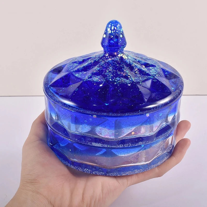 Create beautiful round storage box with mirror using this silicone mold. Perfect for home decoration and crafting. Lid included.