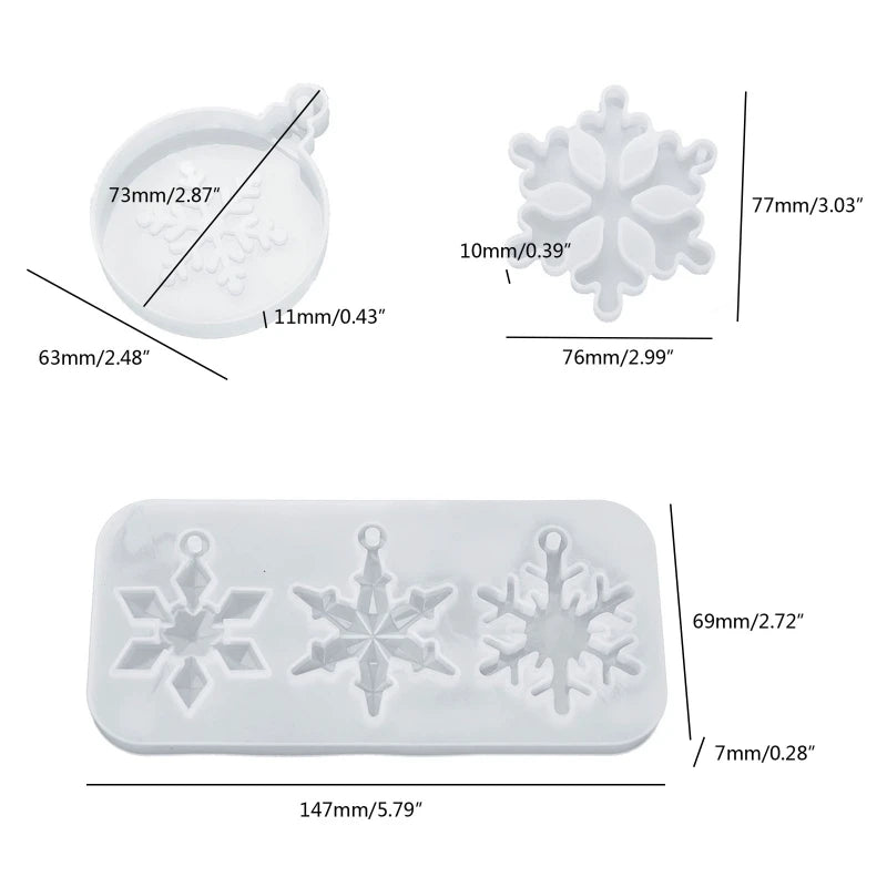 Get creative with these multi-style snowflake silicone molds that come with a hole for making pendants. Perfect for DIY crystal epoxy resin projects, Xmas tree decorations, hanging decor, and unique jewelry pieces.