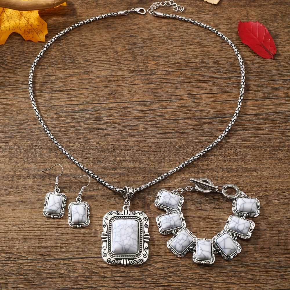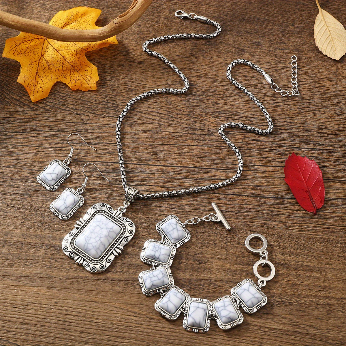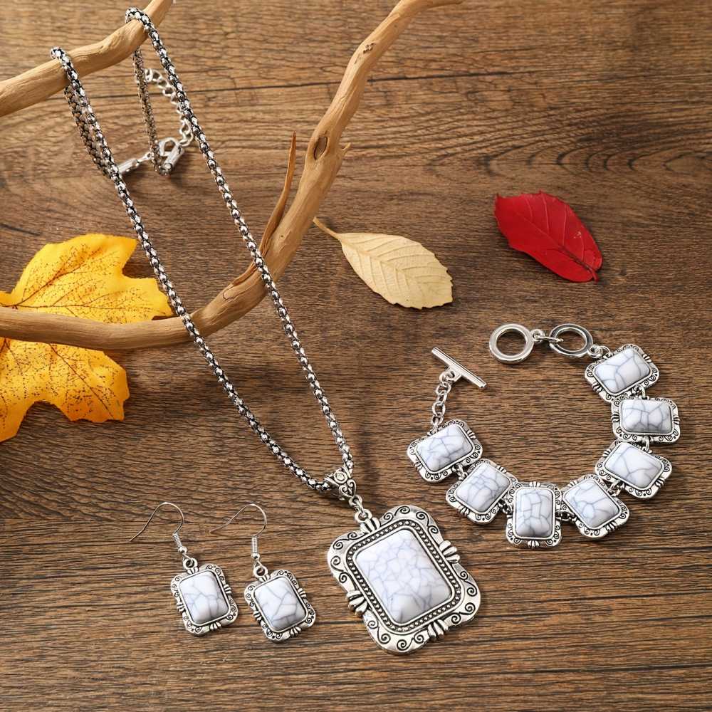Dainty Boho Chic Silver Plated Gemstone Jewelry Set For Women and Girls