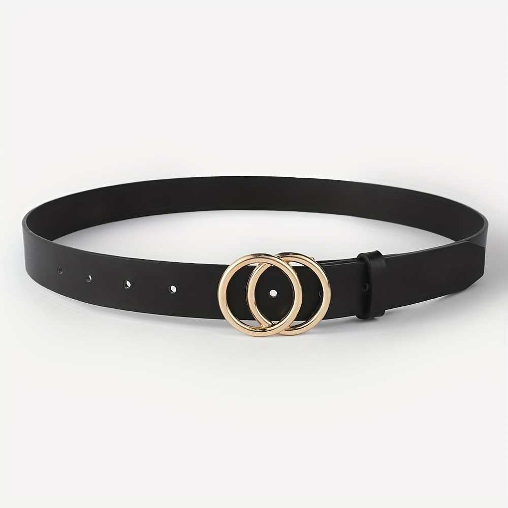 Double Circle Buckle Belt Stylish PU Leather Accessory For Women