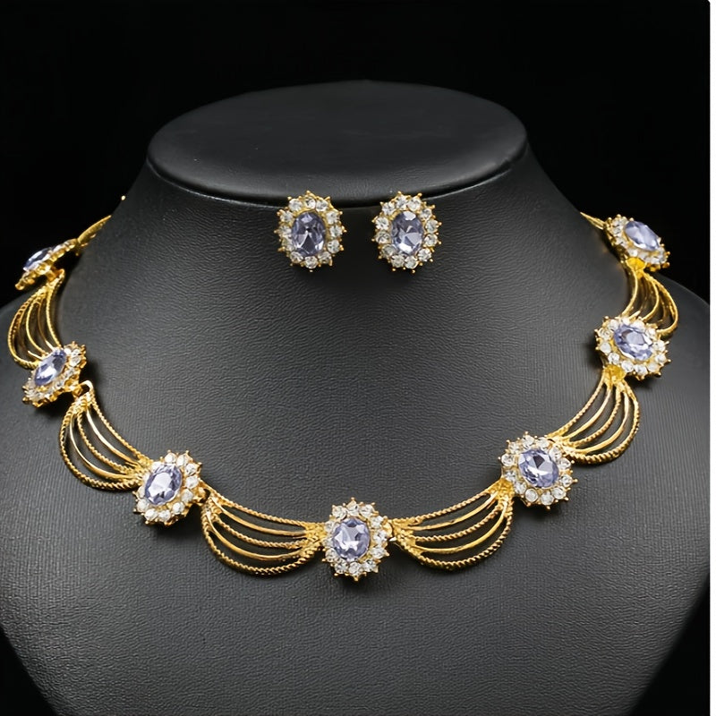 Elegant Gold Plated Crystal Jewelry Set For Weddings and Parties