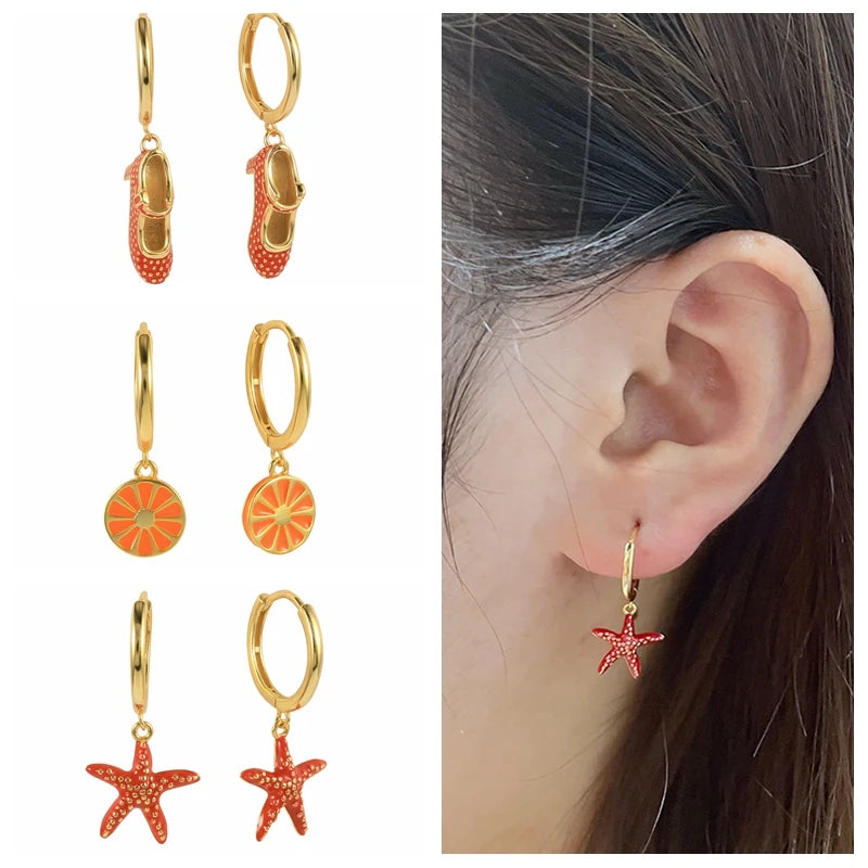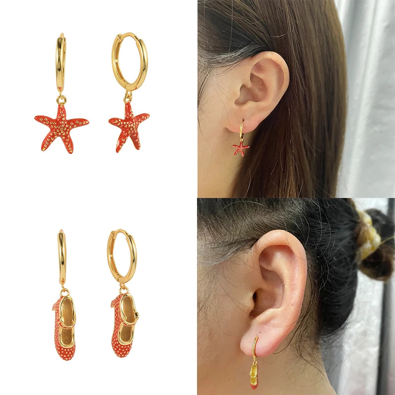 Add a whimsical touch to your outfit with these fun orange starfish earrings. Perfect for dance shoes enthusiasts.