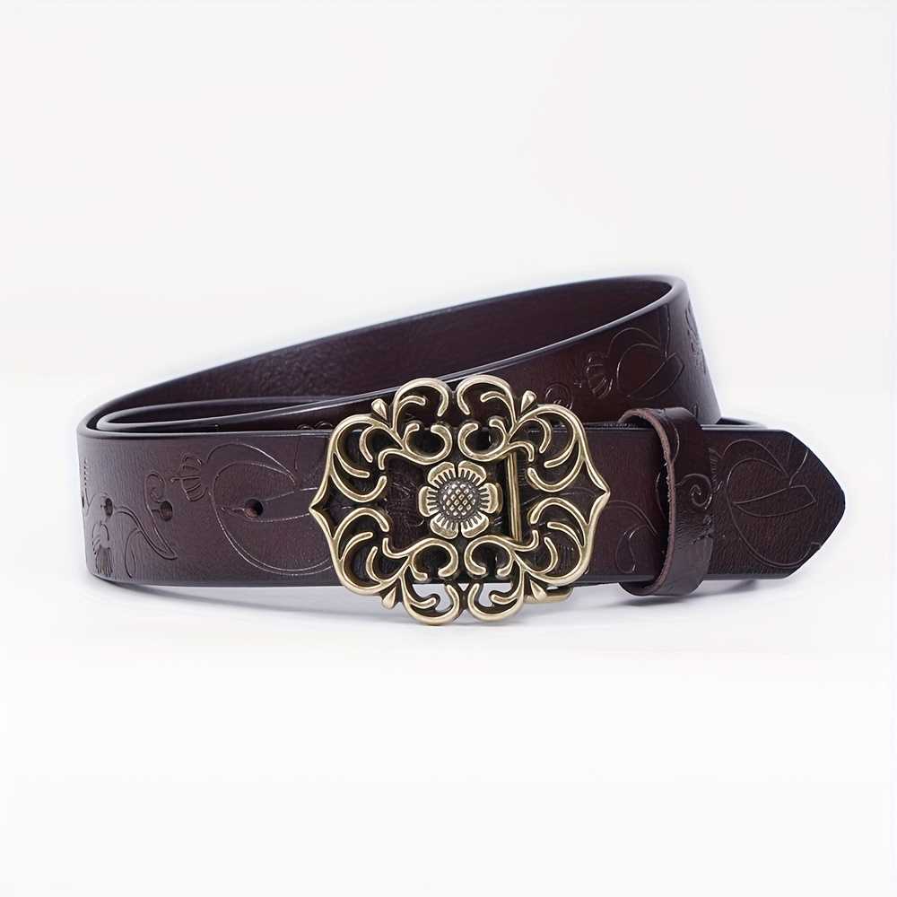 Flower Hollow Buckle Genuine Leather Belt Vintage Cowhide Wide Elegant Belt